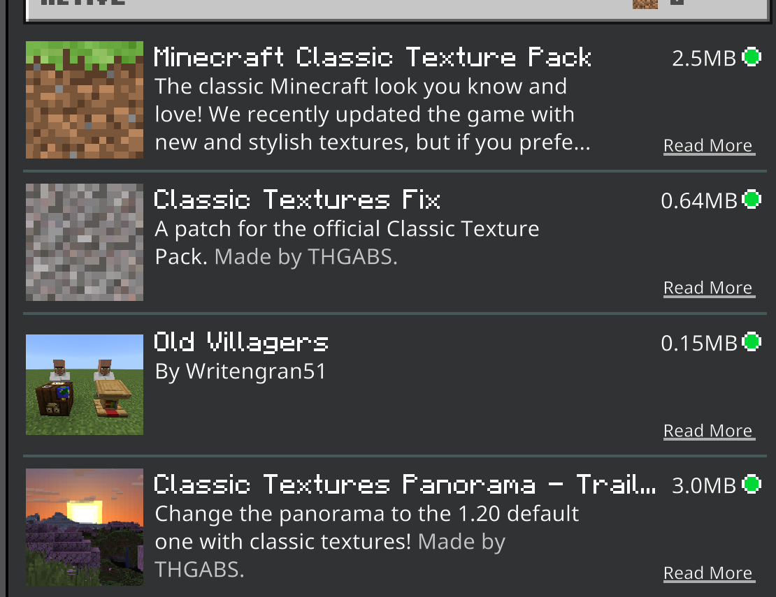 The screenshot shows the "patch" pack below the classic textures pack in the list. That means the classic textures pack will override anything in the patch pack that has the same file name. In order to have the patch pack override the classic textures pack, you need to move it to the top of the list.
