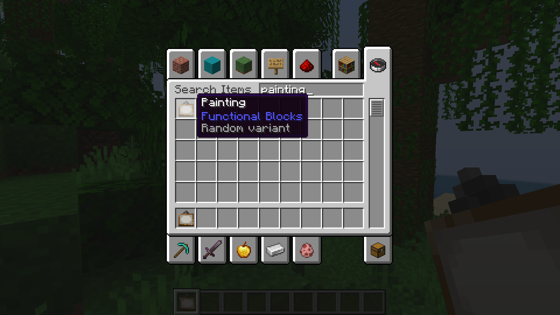✔ Notice that the painting variant(s) appears in the Creative inventory and paintings can be placed on walls as intended