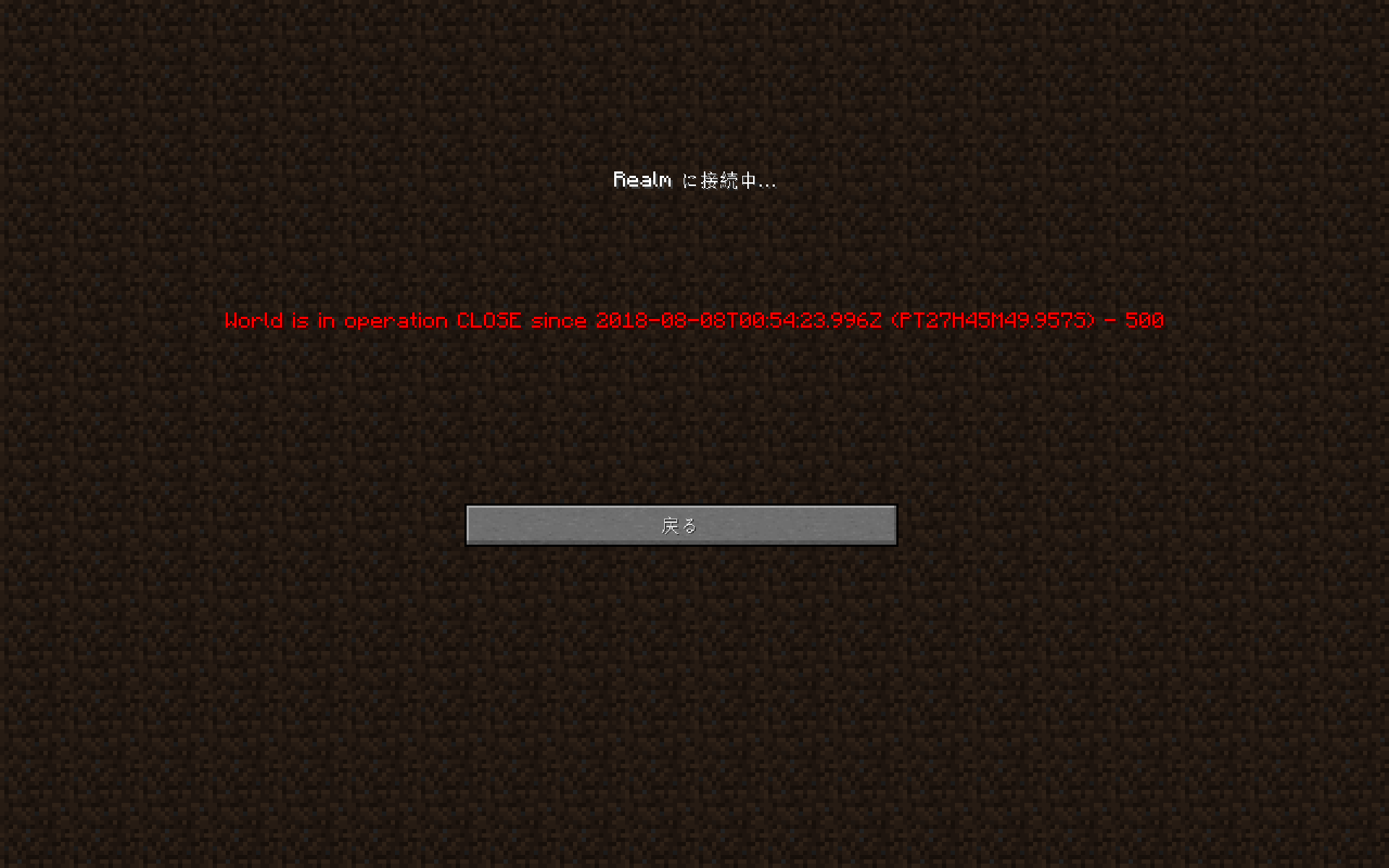 We have been shut out from our Realms server for the past 2 days with a message saying, "World is in operation CLOSE since 2018-08-08T00:54:23.996Z (PT27H45M49.9575( - 500".