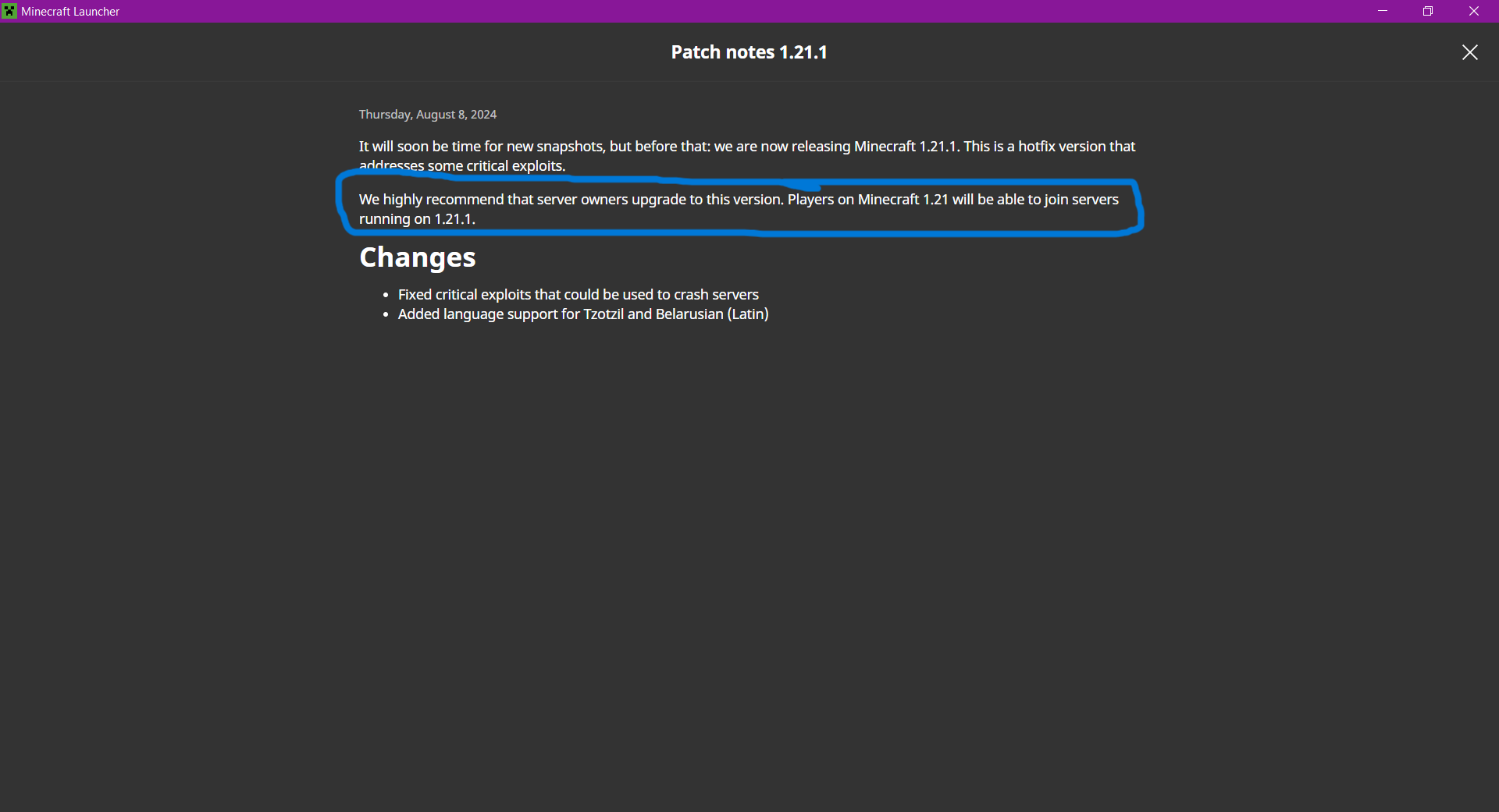 the changelog says users running 1.21 can still join realms running on 1.21.1 yet i cannot join my friend's realm on 1.21.