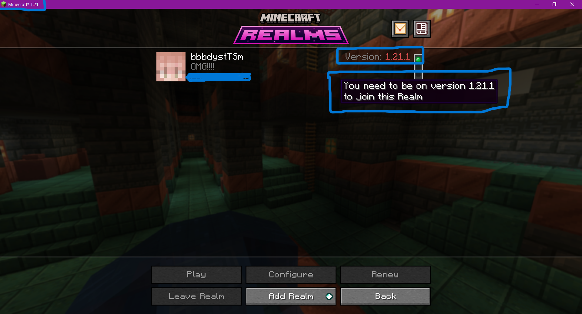 the menu says "you need to be on version 1.21.1 to join this realm"