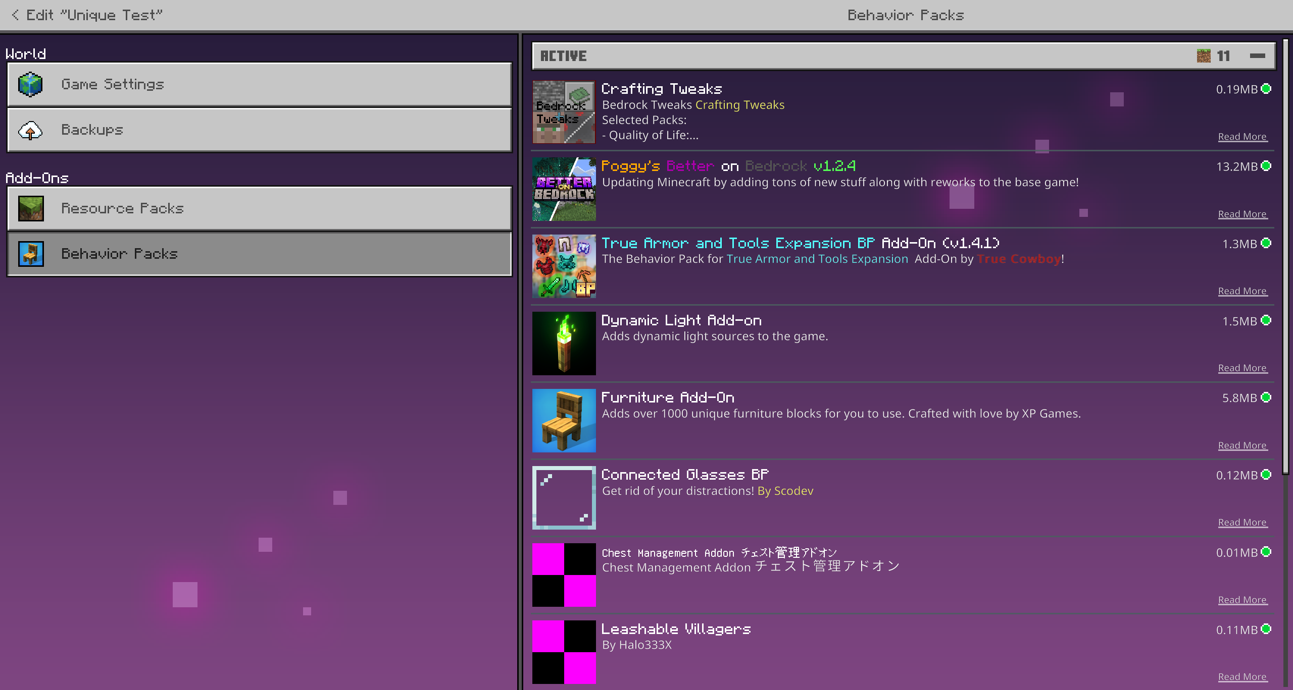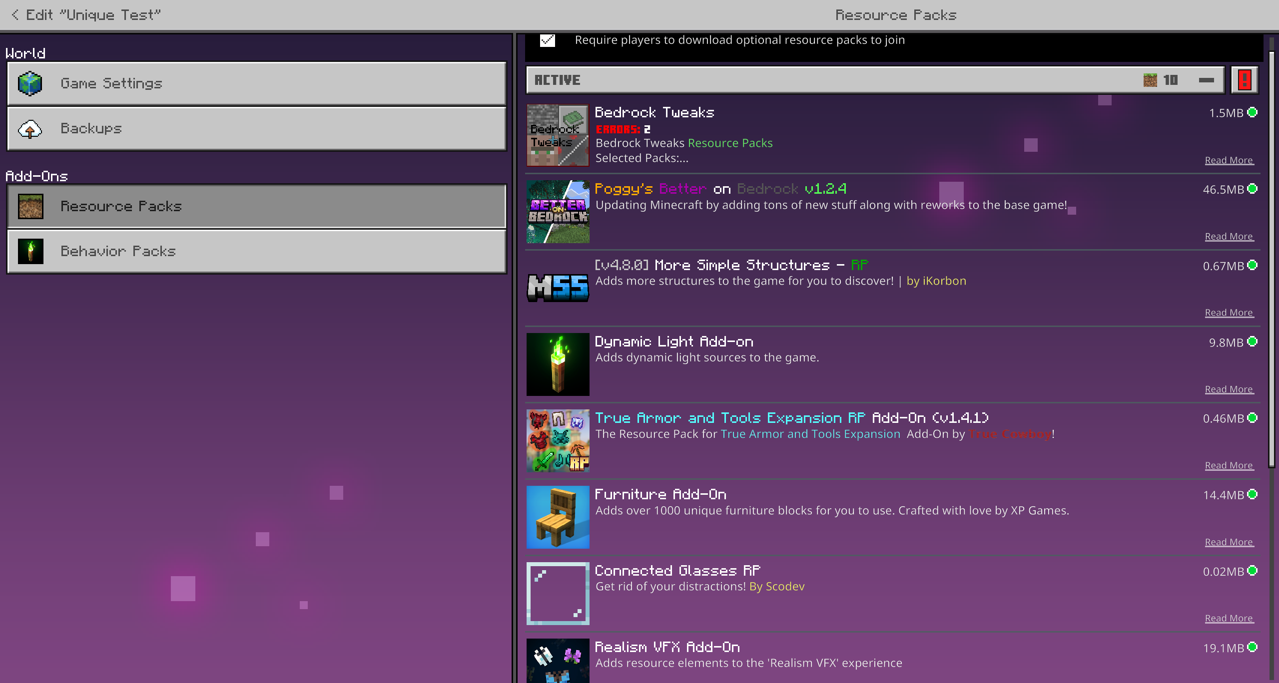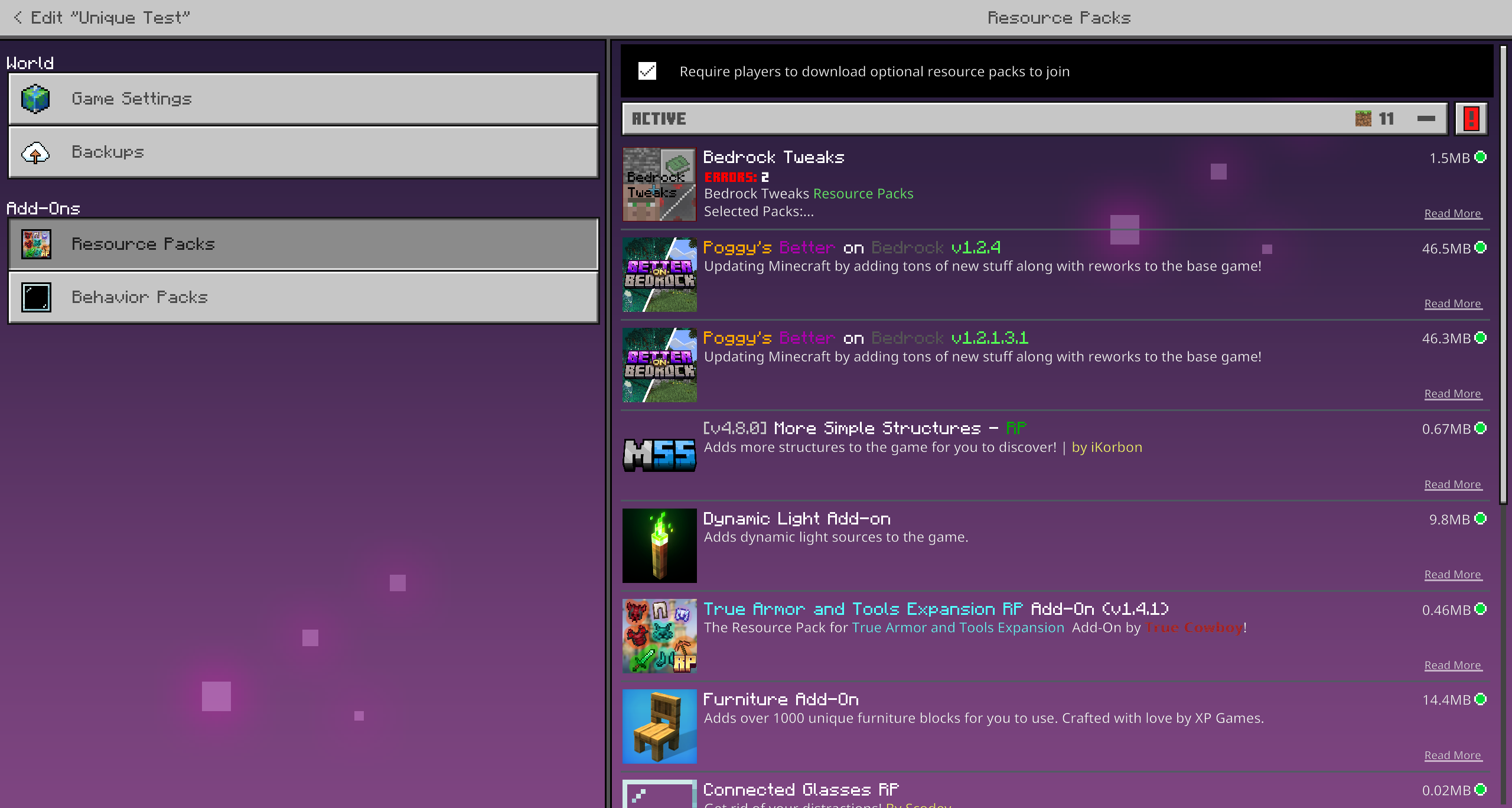 When I download the addons and check the resource packs, it downloaded an old pack that the world used to be on. eg. Better on Bedrock 1.2.3, Ive got Better on Bedrock 1.4.1