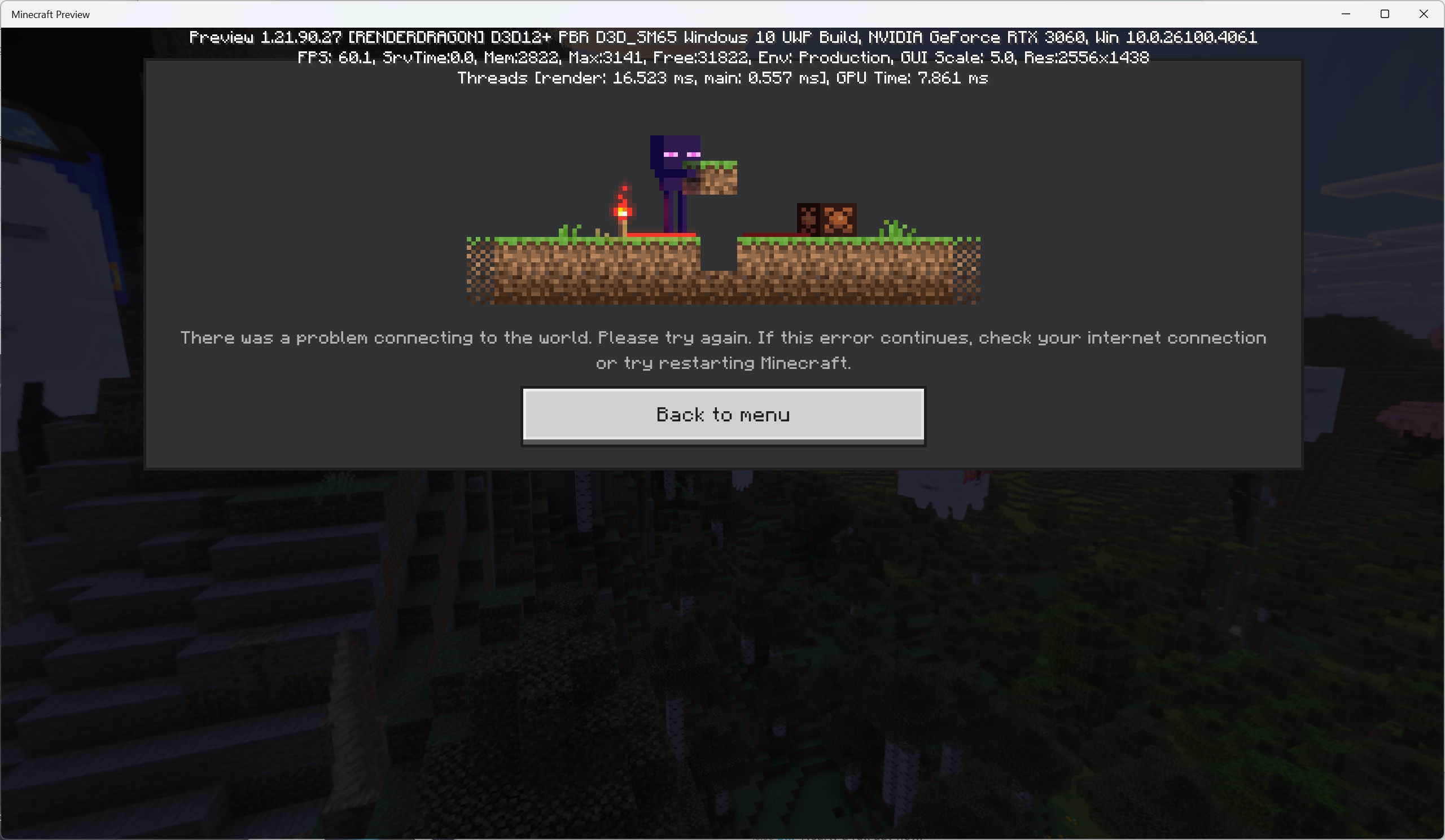 I have been experiencing consistent issues connecting to my Realms server, especially after enabling the Vibrant Visuals feature. The connection is unstable, and I often receive the error message "Unable to connect to the world," even though my internet connection is excellent and stable.