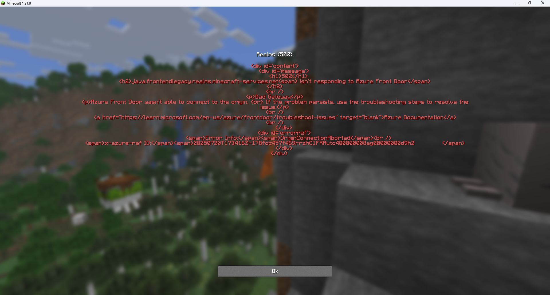 I tried resetting my Realms world to test REALMS-11884, and this resulted in an error screen instantly. It happened to me again, so it wasn't a one-off.
