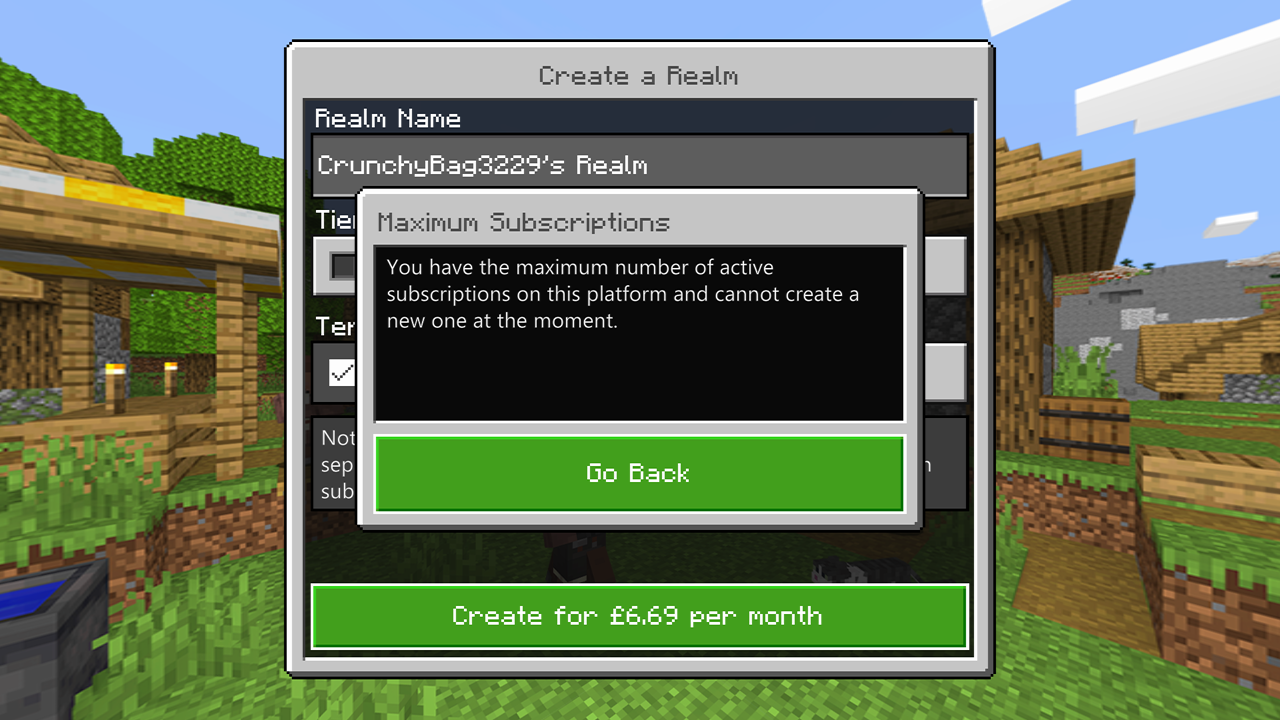 I am unable to renew Realms subscription. The game says: "You have the maximum number of active realms and cannot create a new one right now."