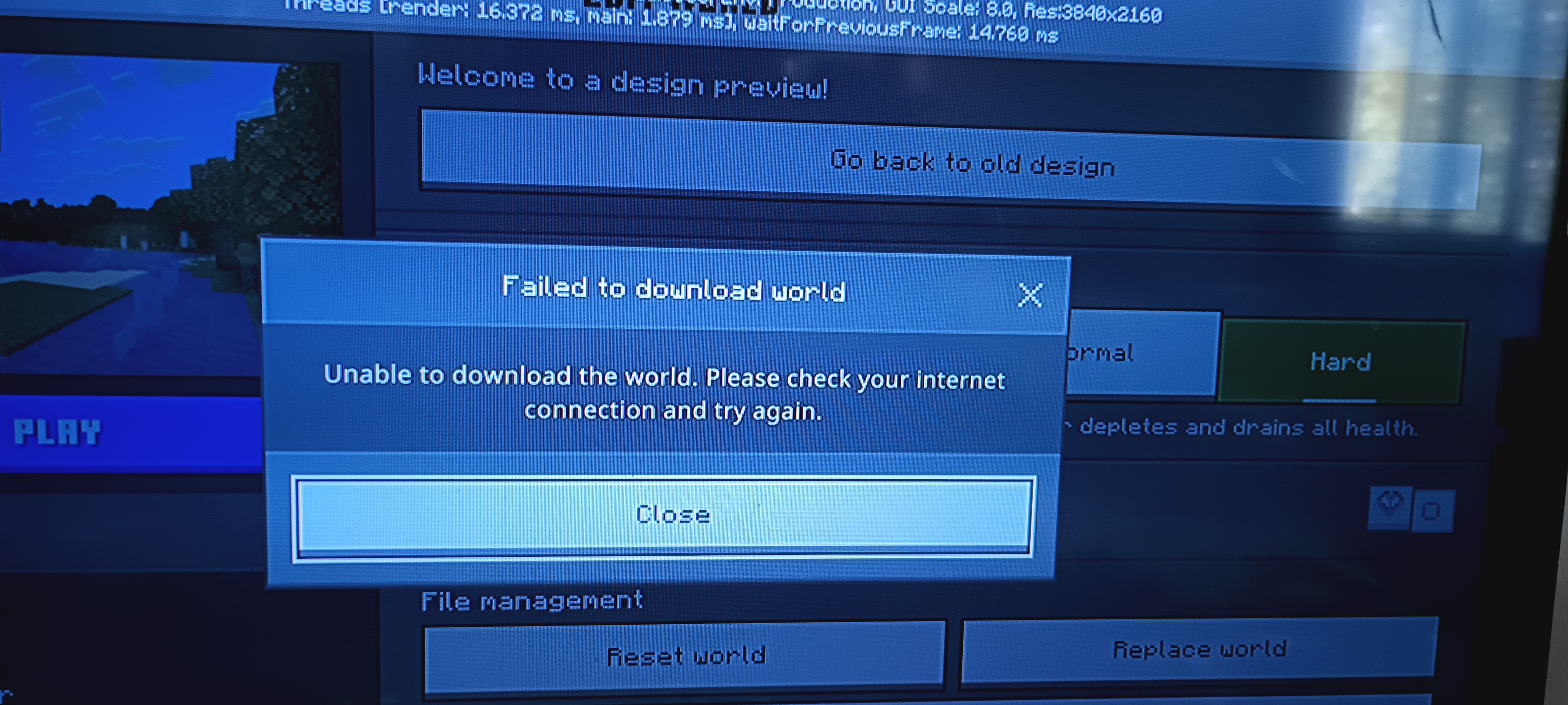 Hello, my name is Tevin Thompson. I am having an issue with downloading a specific Realm World on Minecraft Preview. I have tested this with another world, and this isn’t an issue that is specific to the first one I tried to download. Specifically, when I upload said world and try to redownload it a message saying, “Failed to Download World – Unable to Download World. Please check Internet Connection and Try Again” pops up. Also, when I check to see how big the world is under the download button, it incorrectly lists the size as 0.01mb, which has been consistent for both worlds that I tested.
