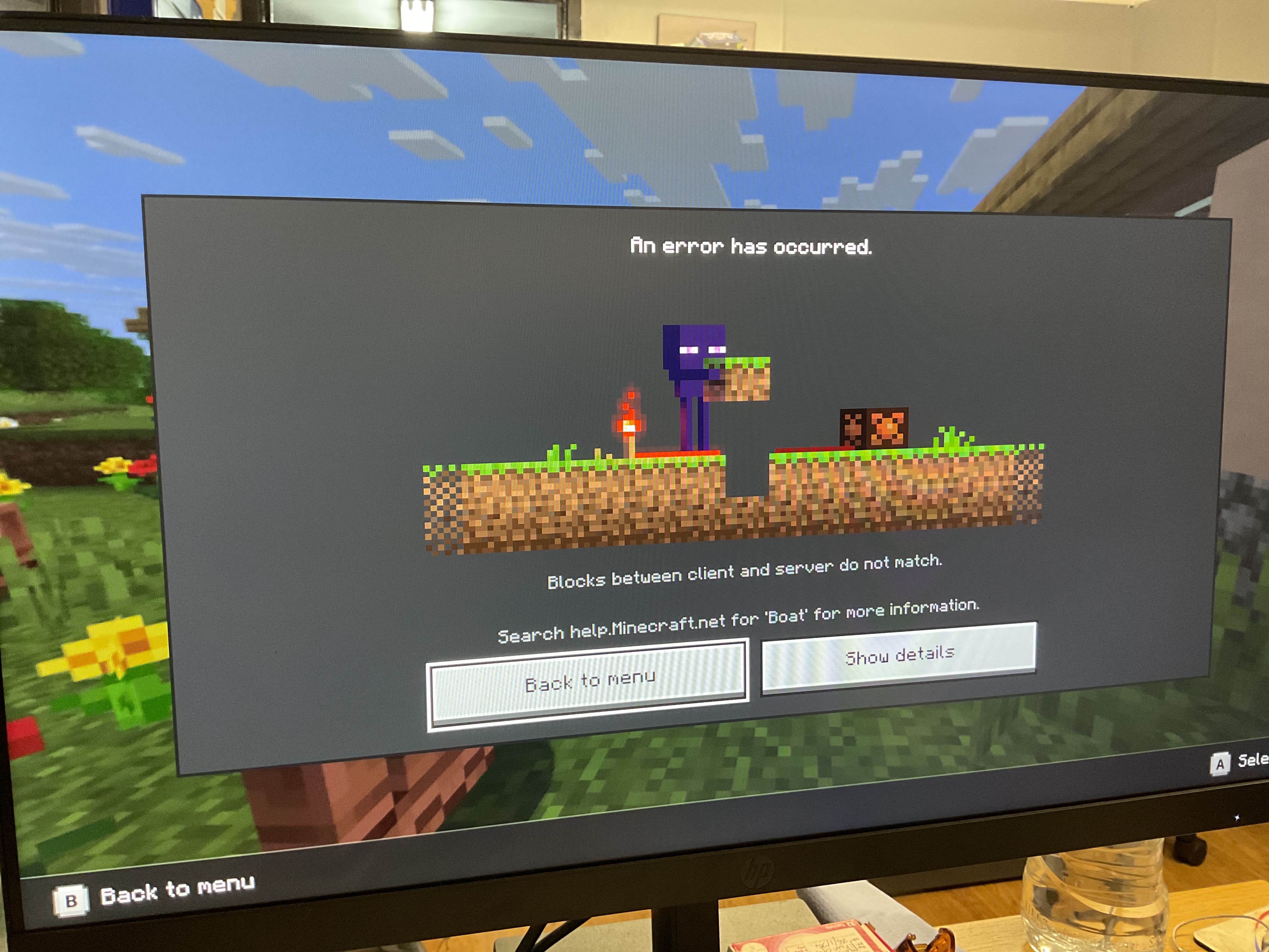 Every time I try to open my realm I get ‘an error occurred’ and it tells me the blocks between client and server do not match. Picture attached.