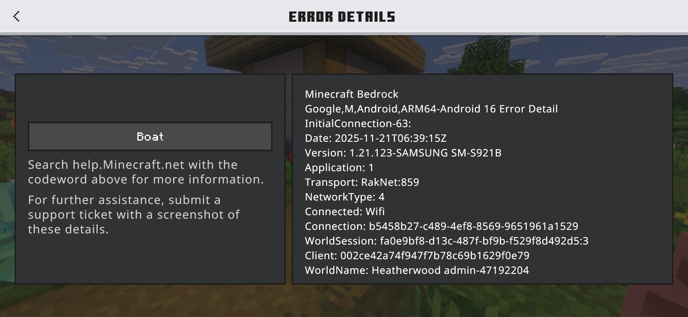 I keep getting error coded ‘boat’ when I play my 2 player realm with add ons