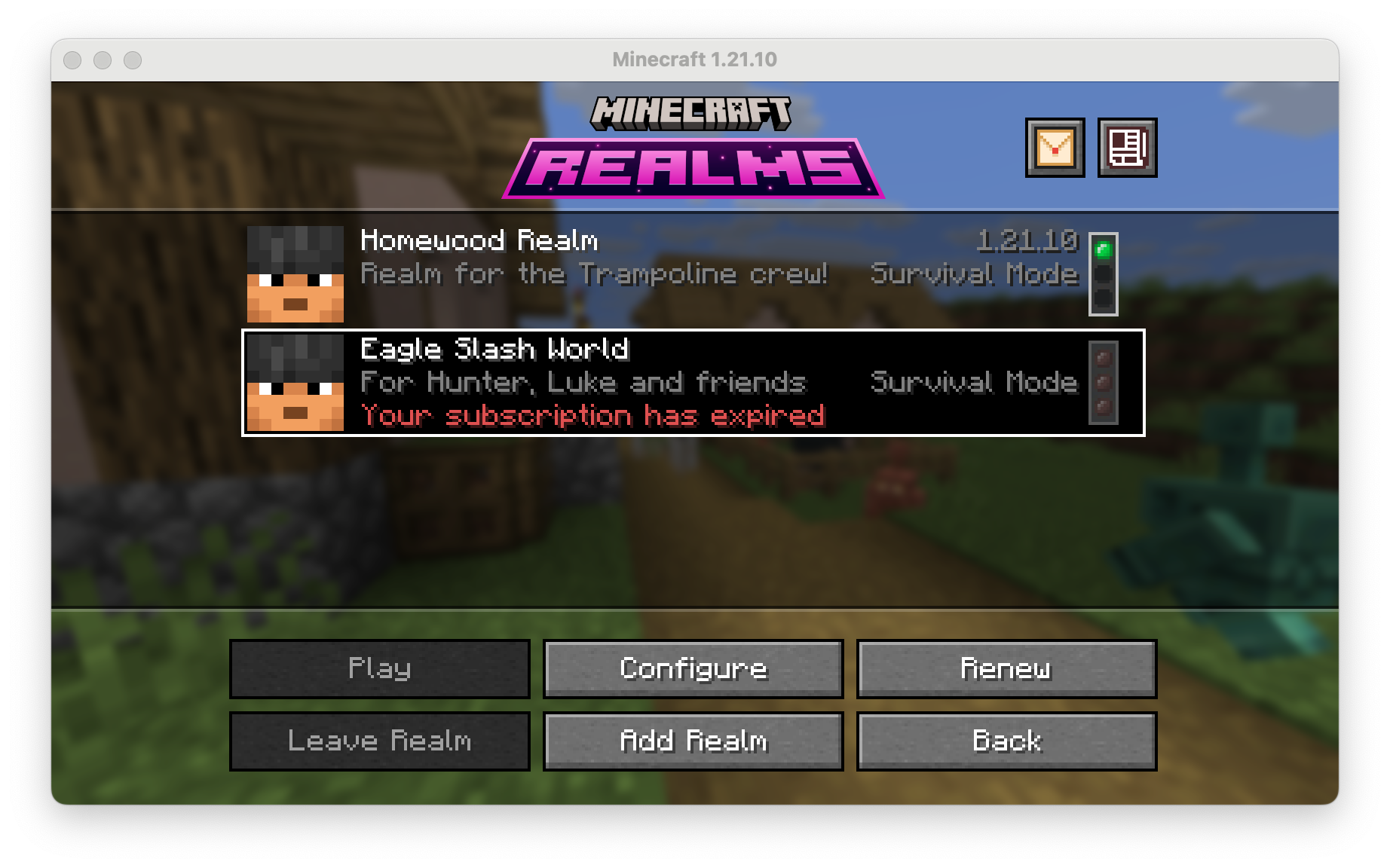 I renewed an old Java edition Minecradt Realm but it has not restored correctly. In the Minecraft Java client it still lists the Realm subscription as expired and in the web portal when I click on the Realm settings I get “Something Went wrong. Please reload to try again”. When I hit reload it simply takes me to the home page of that portal.