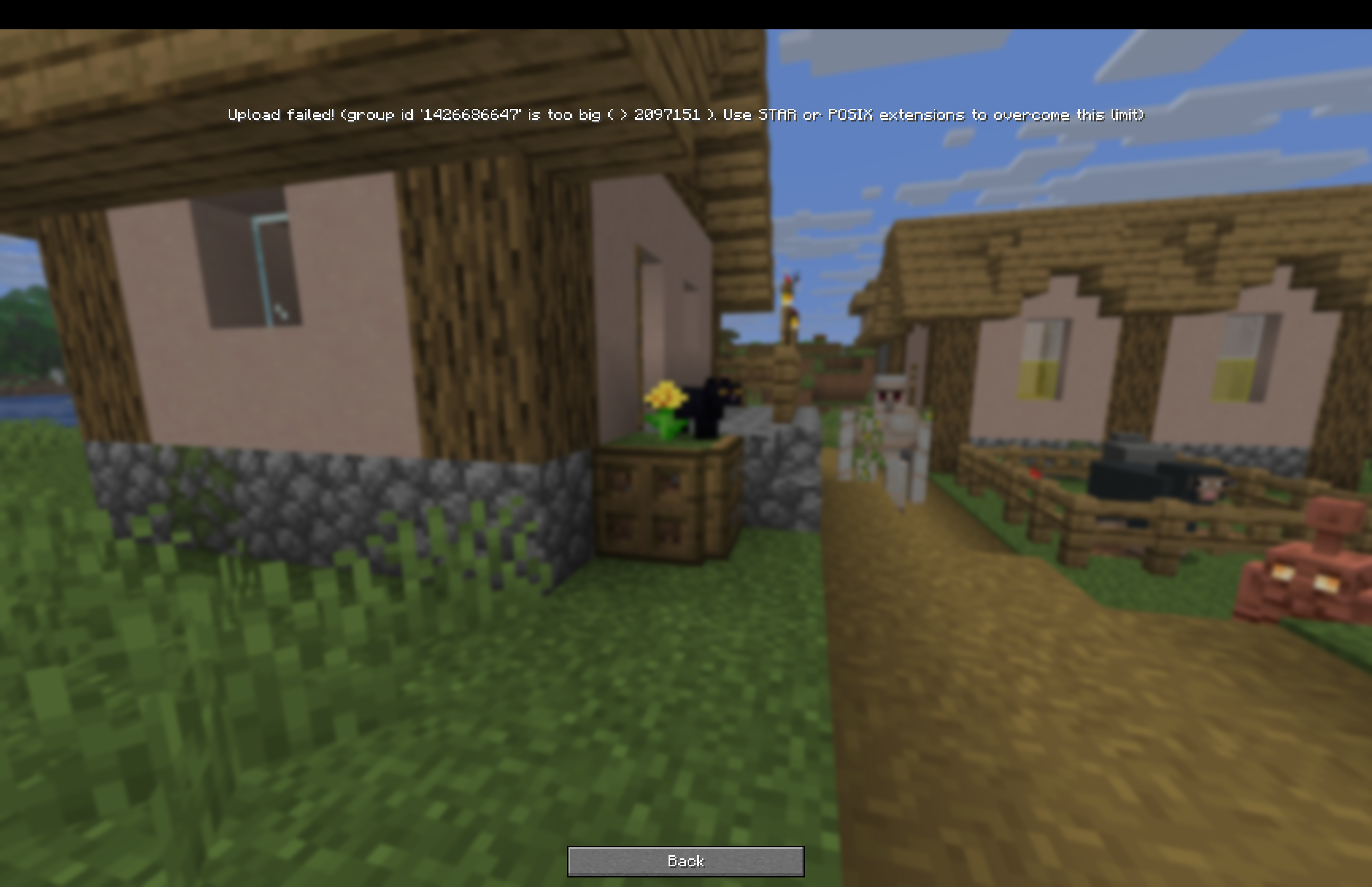 When uploading my singleplayer worlds I get hit with an error message instantly of “Upload failed! (group id 1426686647" is too big C7 2097151 2 Use STAR or POSIM extensions to overcome this limits” and another error message when I try and create a new world through the realm configure screen with a seed.