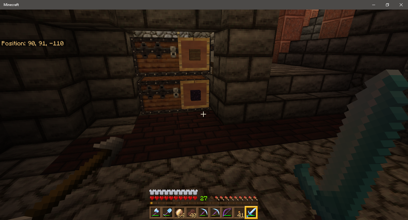 I've included some screenshots that each of us took to show our perspectives of what was going on. We both logged out of the realm and waited a few minutes before logging back on, and then the problem appeared resolved. After getting most of the work done, we logged off. Later when she returned, all the progress in that chunk was gone. The chunk next to it where the previous chests were that we moved/sorted were gone as they were when we left. Two of the sorted chests that were in that chunk, as well as some of the floor/wall pattern, are still there. Items that were in my inventory from the chests that we were sorting are still in my inventory.