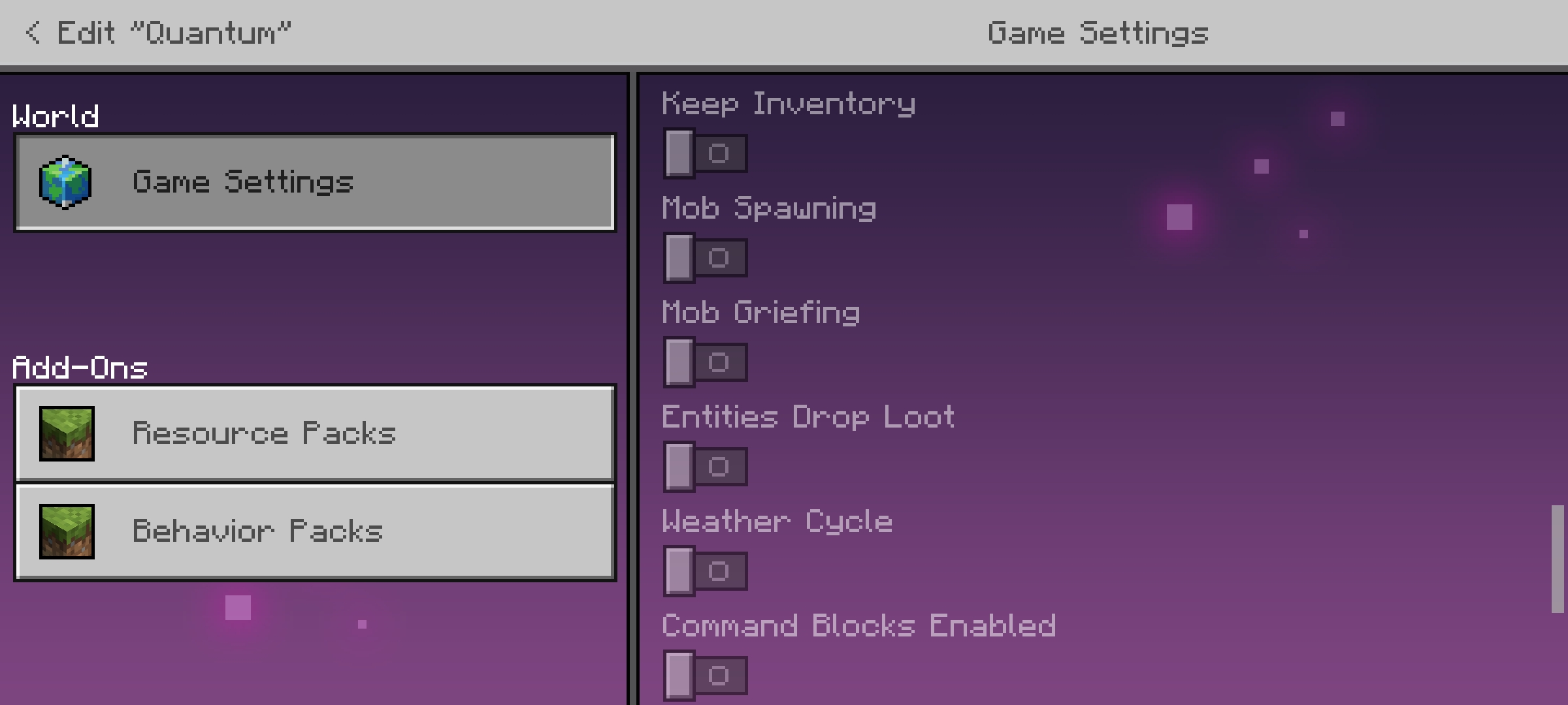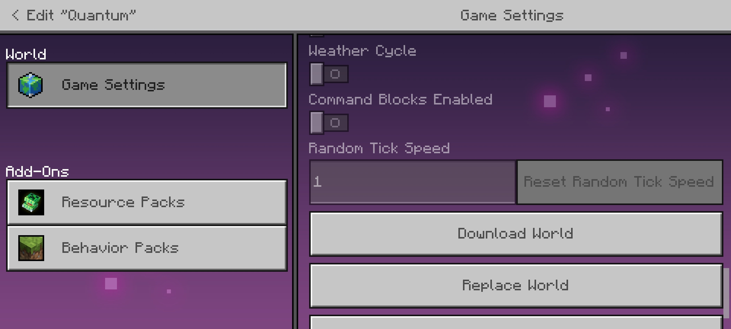 Although this bug had been reported as resolved, it certainly was not. My realm is now virtually unplayable. All weather has been turned off as well as the day & night cycle… even mob spawning was deactivated. Now it’s requiring me to turn on cheats in order to reactivate those features, essentially taking away my ability to earn achievements in this world (that was the reason I started the world in the first place). Since when is weather considered a cheat, or the ability to fight mobs.