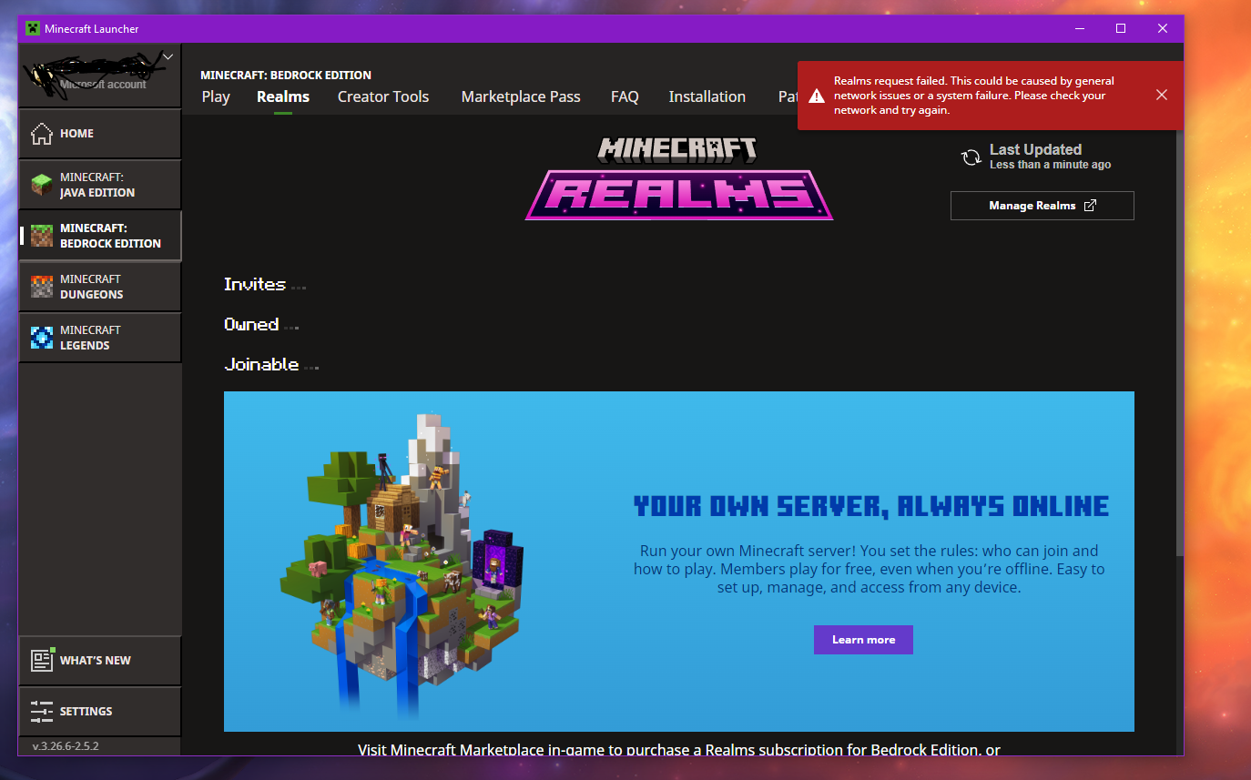 Bedrock realm is down, list not loading for some or list loads but when they click play it does nothing