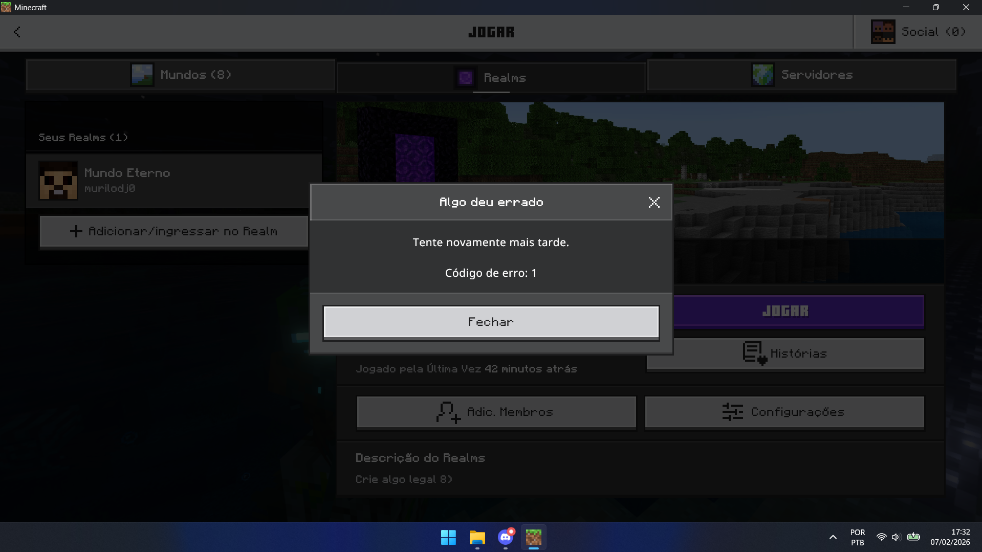 Erro numero 1, ao tentar entrar no realms está dando este erro.
