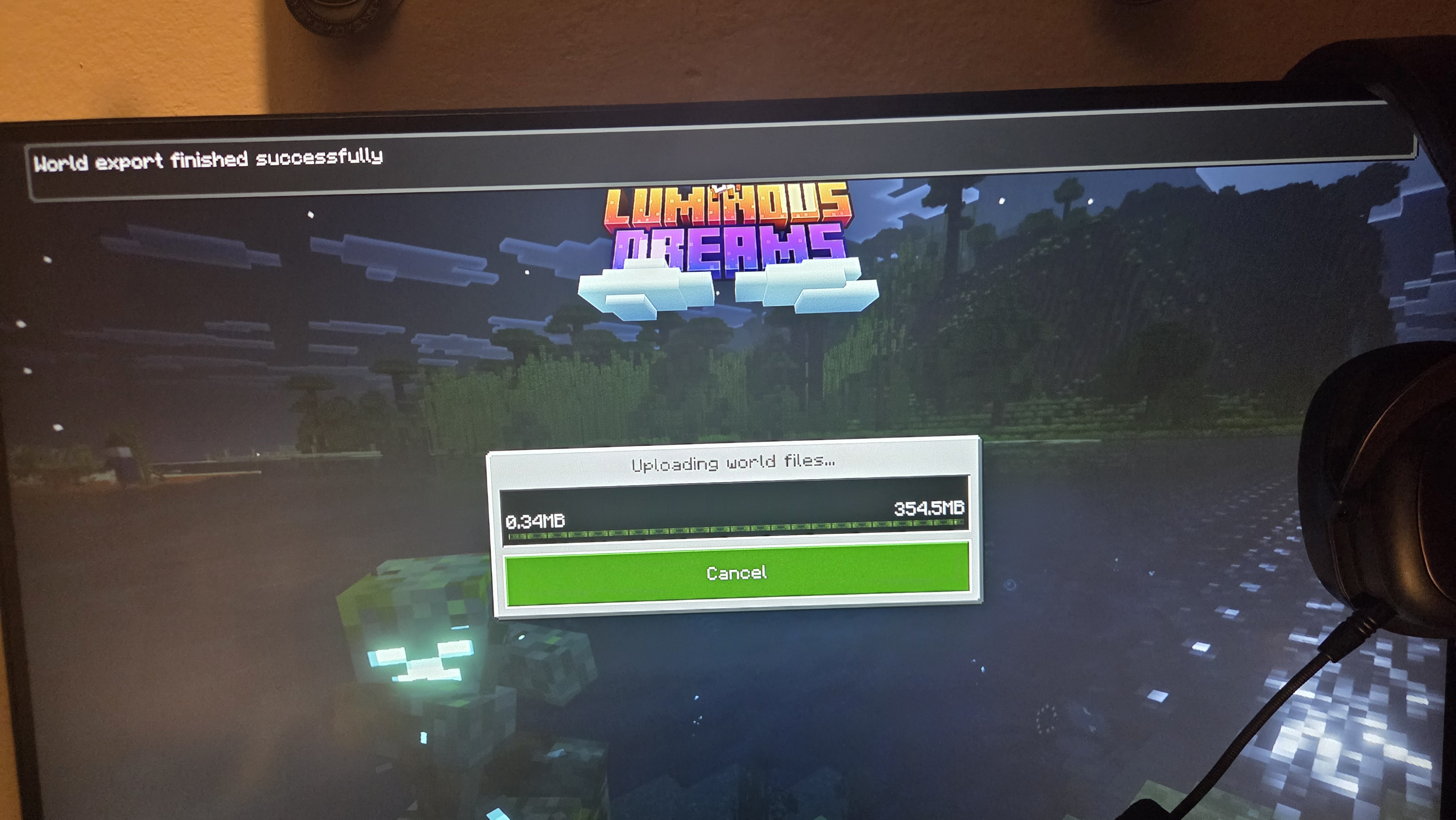 READ: Attachments NOT in order.They are backwards. My world size at 426.4MB is first, exporting world starts sometimes there's an error, but when successful, upload starts then says error occurred near the end of upload multiple times. Uploading small Worlds however works just fine.