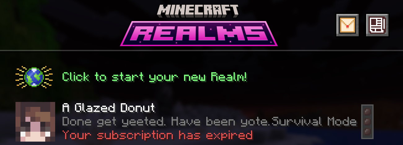 I have renewed the subscription for my realm and allowed 24 hours for the system to update, but the realm still says “Your subscription has expired”. I saw on an online forum that clicking the “renew” button helped for them, so I clicked it, and now I have paid twice for a subscription to realms and it STILL says “Your subscription has expired” and there is a button saying “click to start your new realm!”