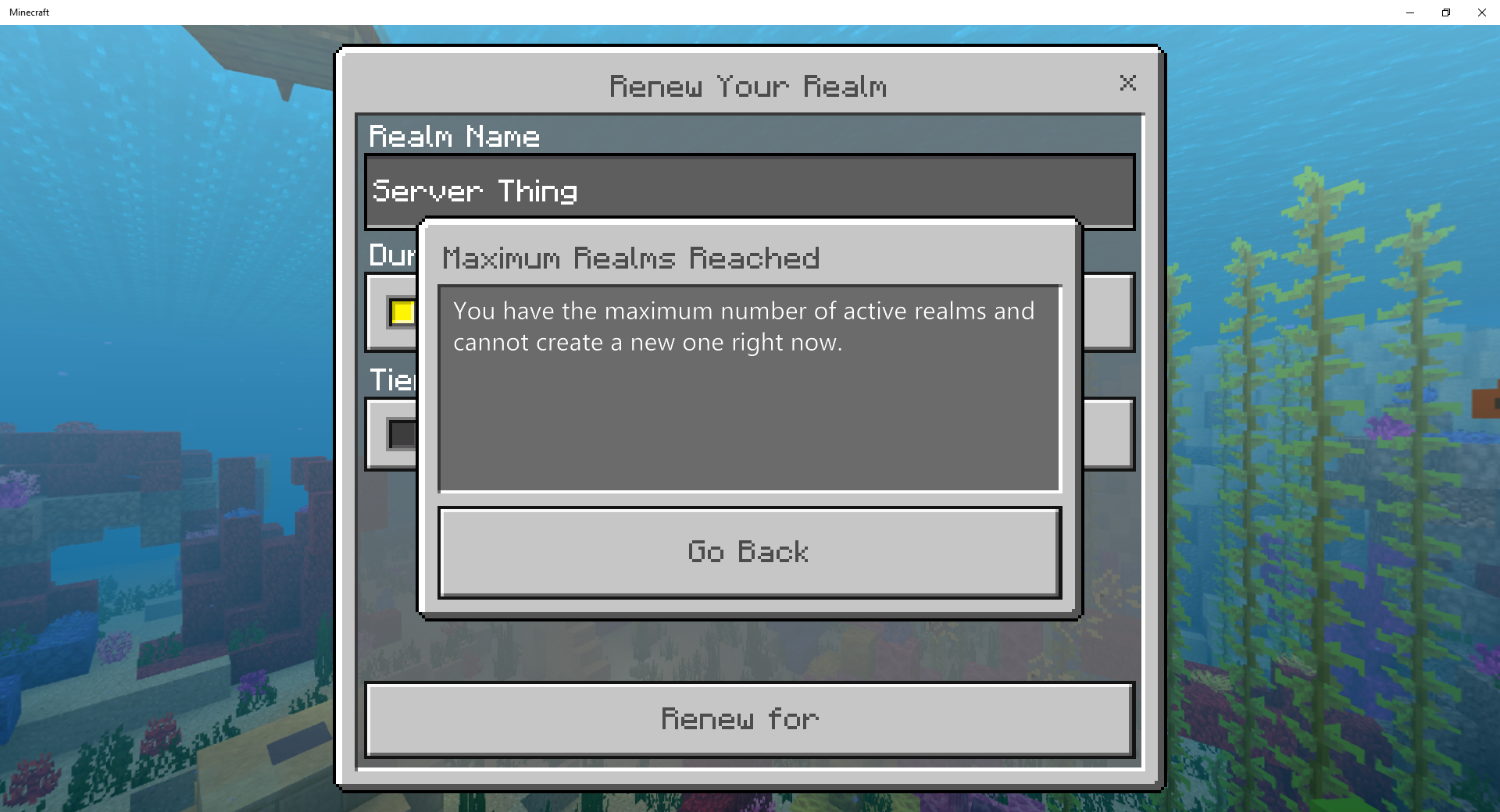 I try to renew my expired realm but i get a "you have the maximum number of active realms and cannot create a new one right now". I have only 2 expired realms and am not a member to any other realms.