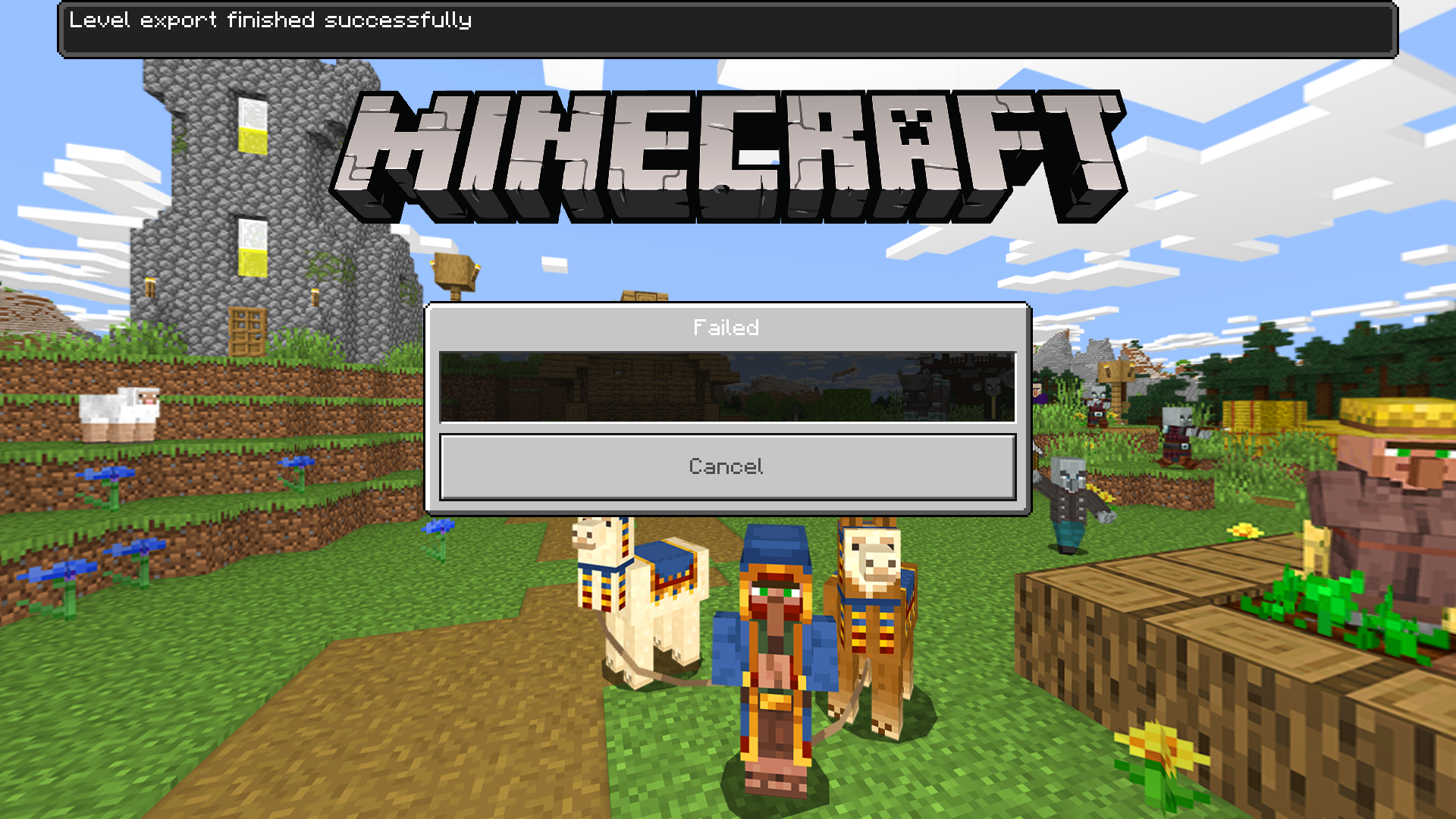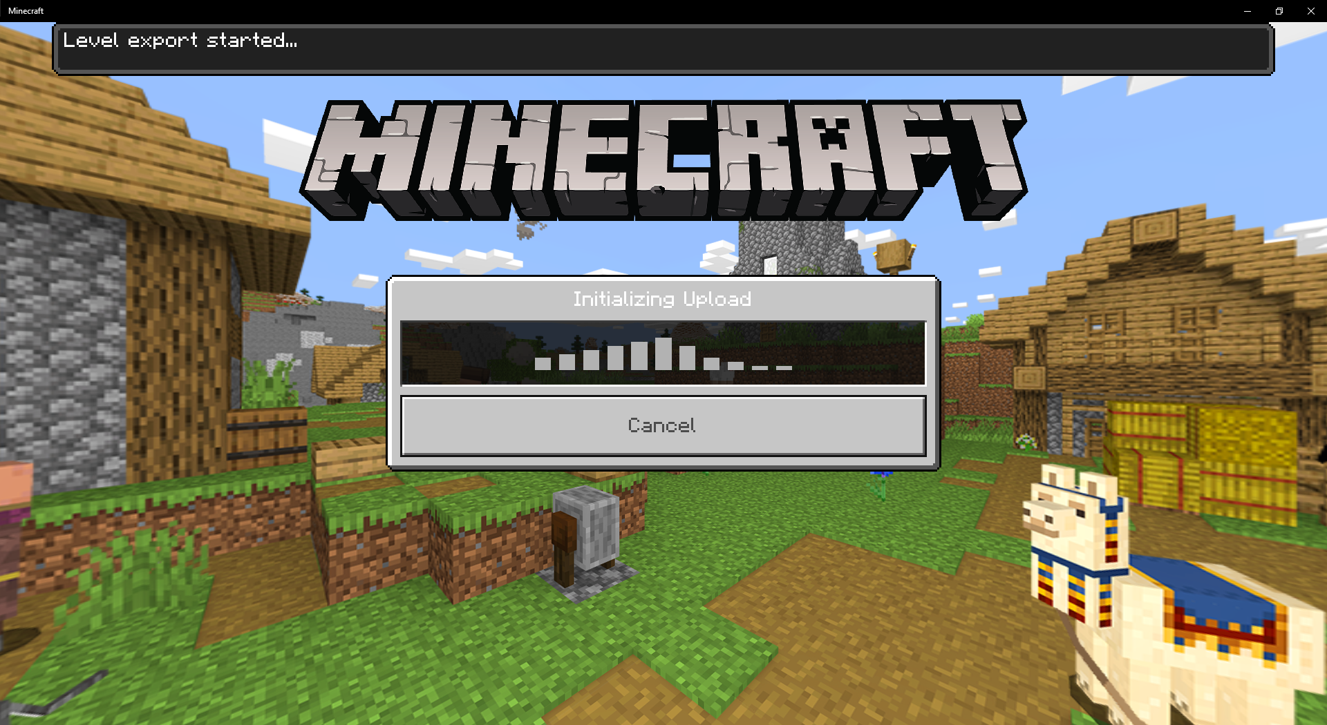 The "Replace World" option while in the "Edit" options area for a realm would normally let you choose a singleplayer world from your worlds list to replace the current realm world. After selecting the world I want to be the replacement world in "screenshot 1" you can see that the "Export in Progress" window shows that 0.00MB out of 0.00MB have been exported even though the progress bar is around 25% done. The export finishes quickly even though the world I am using as the replacement is quite large. Shortly after the exporting is done you can see in "screenshot 2" the "Initializing Upload" phase starts, shortly followed by what happens in "screenshot 3". There is just the "Cancel" button and "Failed" above.