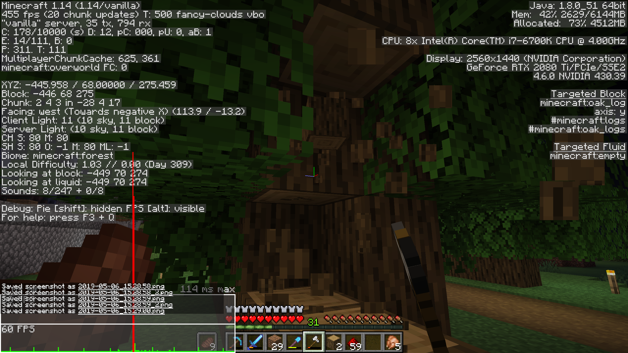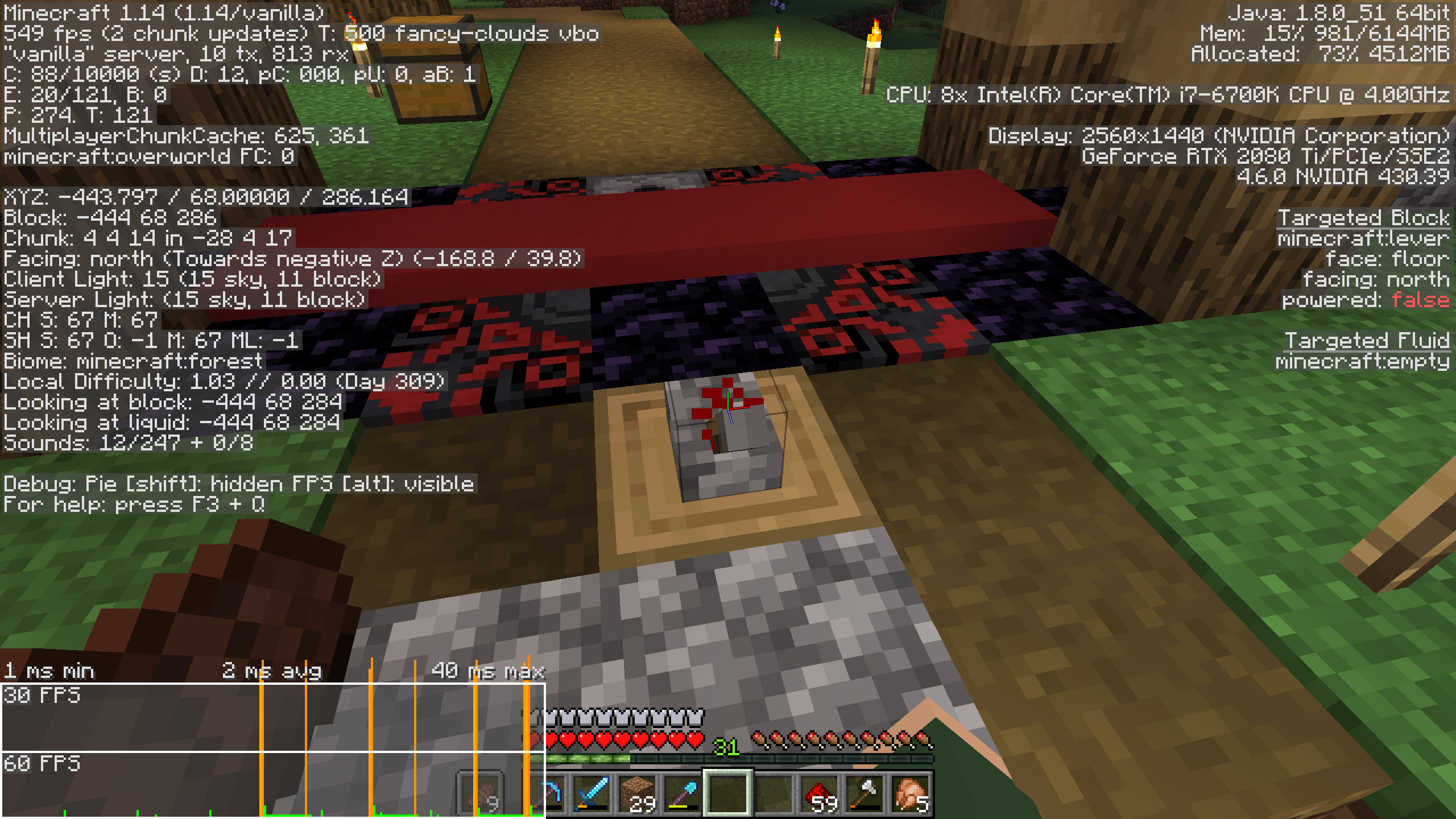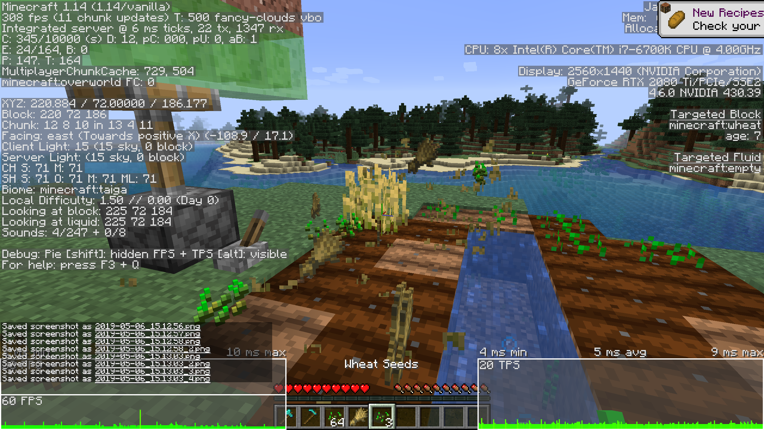 Many activities that cause blocks to update result in lag spikes, specifically in Realms. Culprits include but are not limited to: planting seeds, breaking wheat, fire spread, breaking logs that are touching leaves, and pistons (cause the worst lag). Taking part in any of these activities usually causes a brief but very sharp lag spike taking frames below 10 fps. Spamming the pistons causes the game to practically freeze. I tested this in SP and found none of the issues occur there... Only Realms