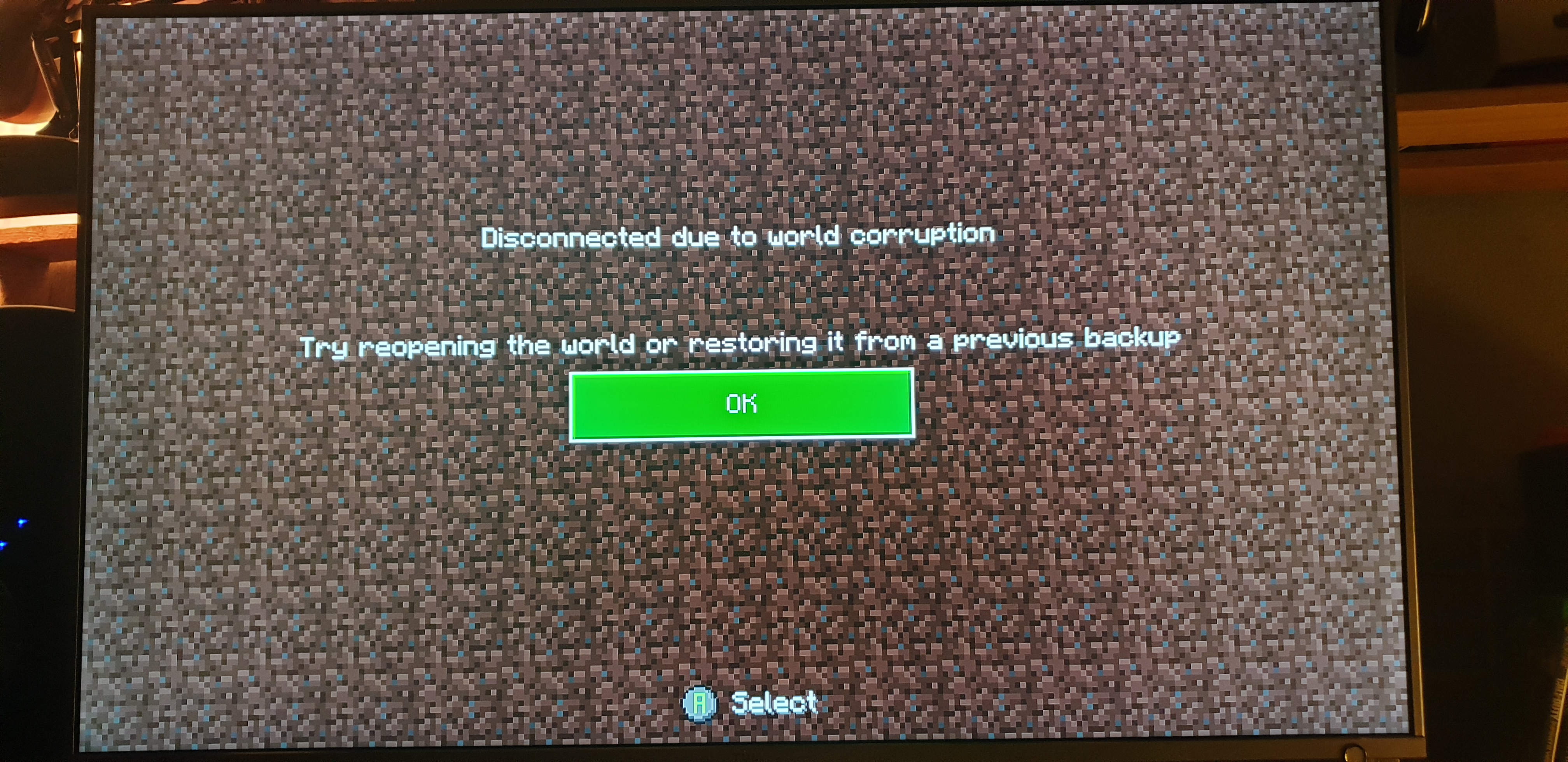 It states "try reopening the world or restore it from a previous backup" ...