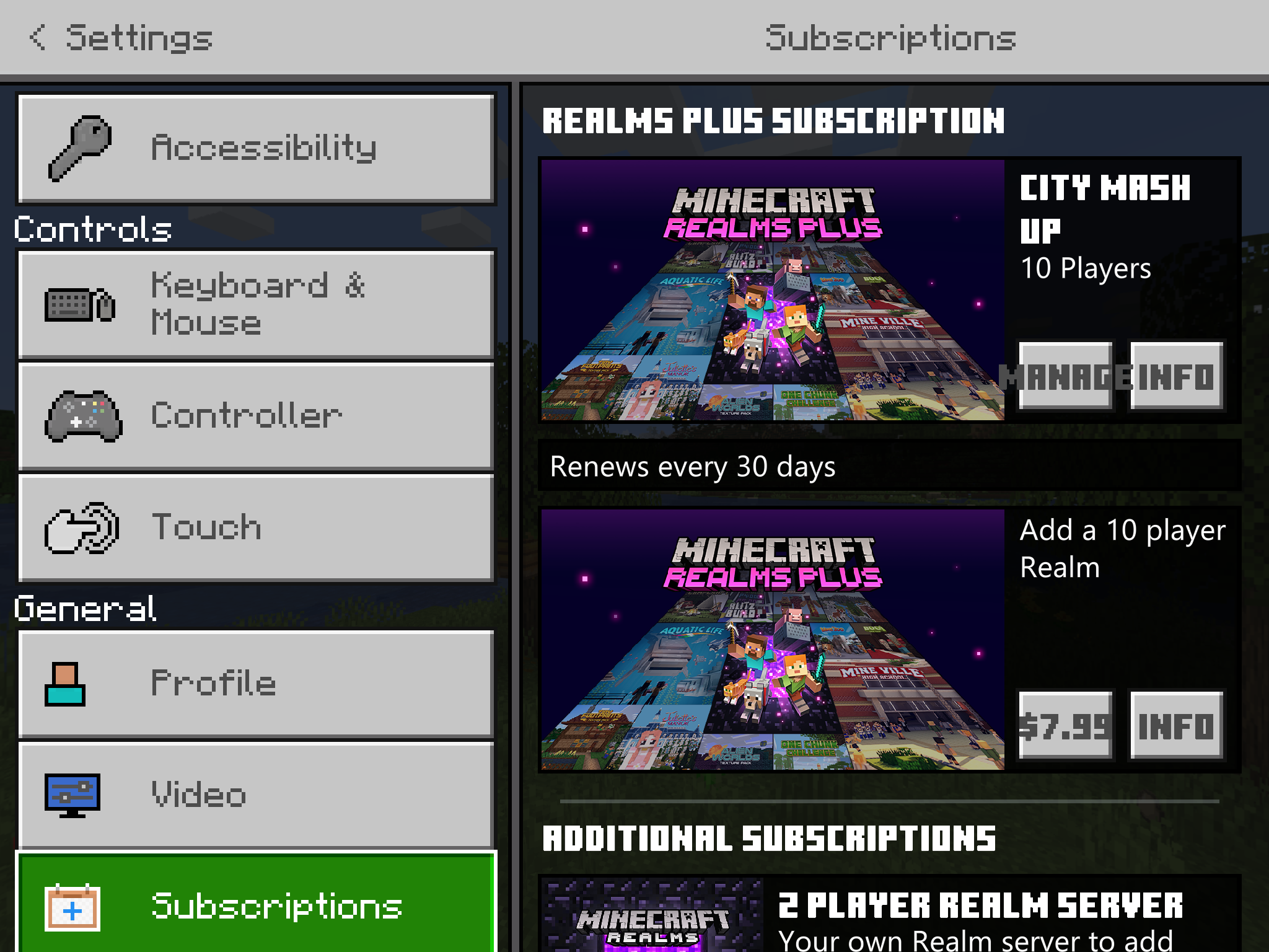 "Them" referred to the Realm Plus Worlds. I also purchased the Minecraft Windows 10 Master Collection, and I'm locked out of that purchased set of worlds and resource packs as well. I'm logged into my correct Microsoft account - see my RaeyaLight profile. However, there are no packs or anything as of last night. All the sudden last night, I saved and exited the game and all my stuff was locked, EXCEPT the 1 Realm on your server. I can't access anything that is Realm Plus, even though as you can see, it says my subscription renews every 30 days. When I go to a Realms Plus World or resource pack in the marketplace, it views as if I need to purchase it. I was getting a message that someone was on my device. I'm not receiving that message anymore. I have no idea why this is happening. I'm definitely logged in to the right account. I double checked it against my Microsoft account that I purchased the game via. Everything is right. And, as I said, I was actually logged into the game on my Windows 10 machine when all this happened. I wasn't logged out. And it shows that I'm the "owner" of the realm (as you can see).
