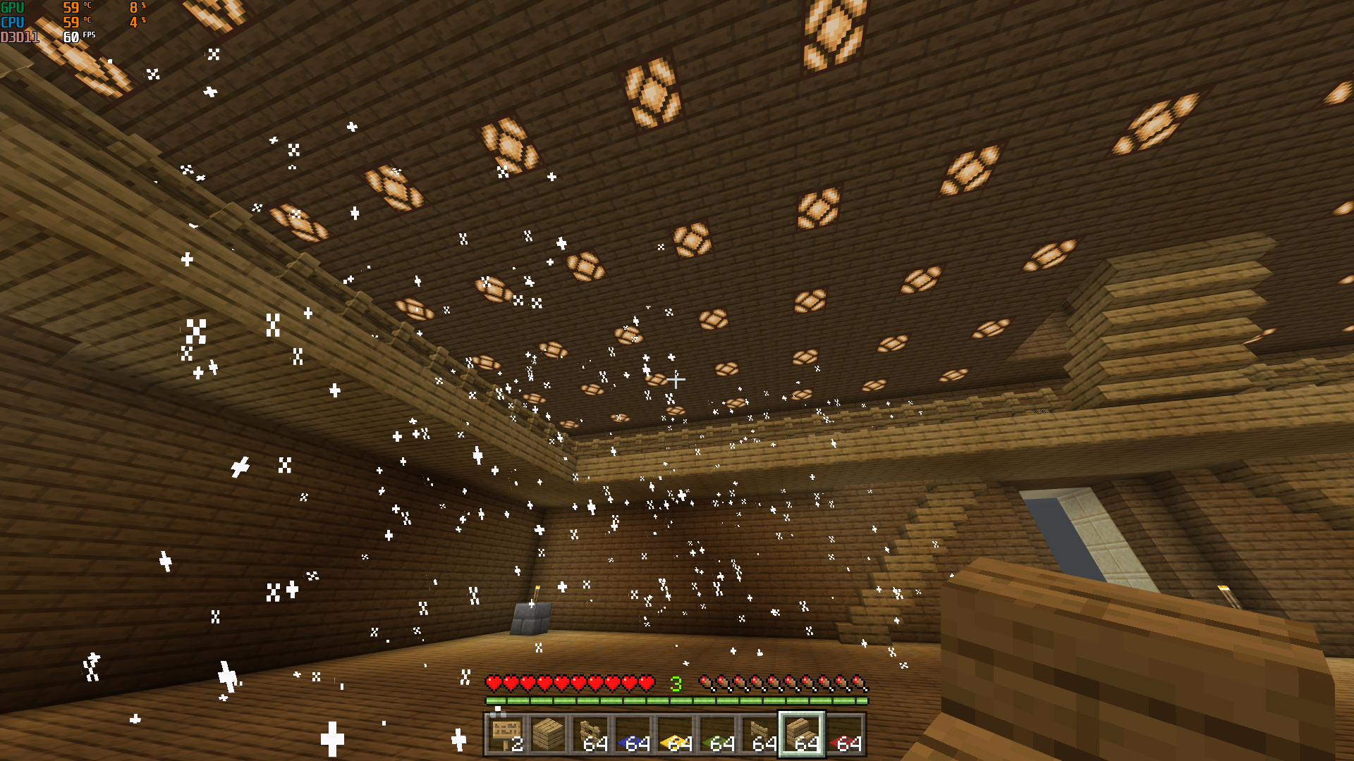 Built a castle with 6 floors of obsidian, bedrock, oak planks, dark oak planks, and birch logs; snow still comes through all 6 floors. Posted screenshot as proof. Using Realms in Minecraft Windows 10 Bedrock version 1.14.60 as of 06/13/2020.