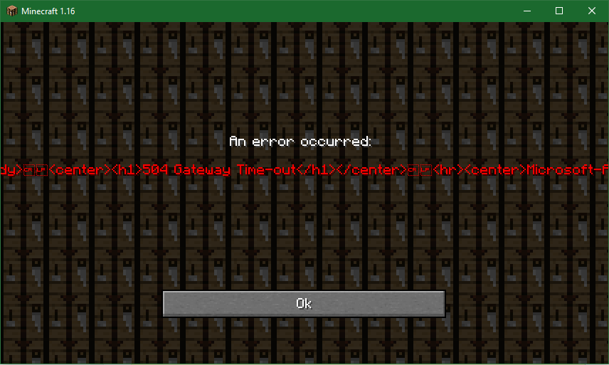 After clicking on the realms button from the main menu, It creates an error screen with a message I can't completely read, it says 504 gateway time-out.