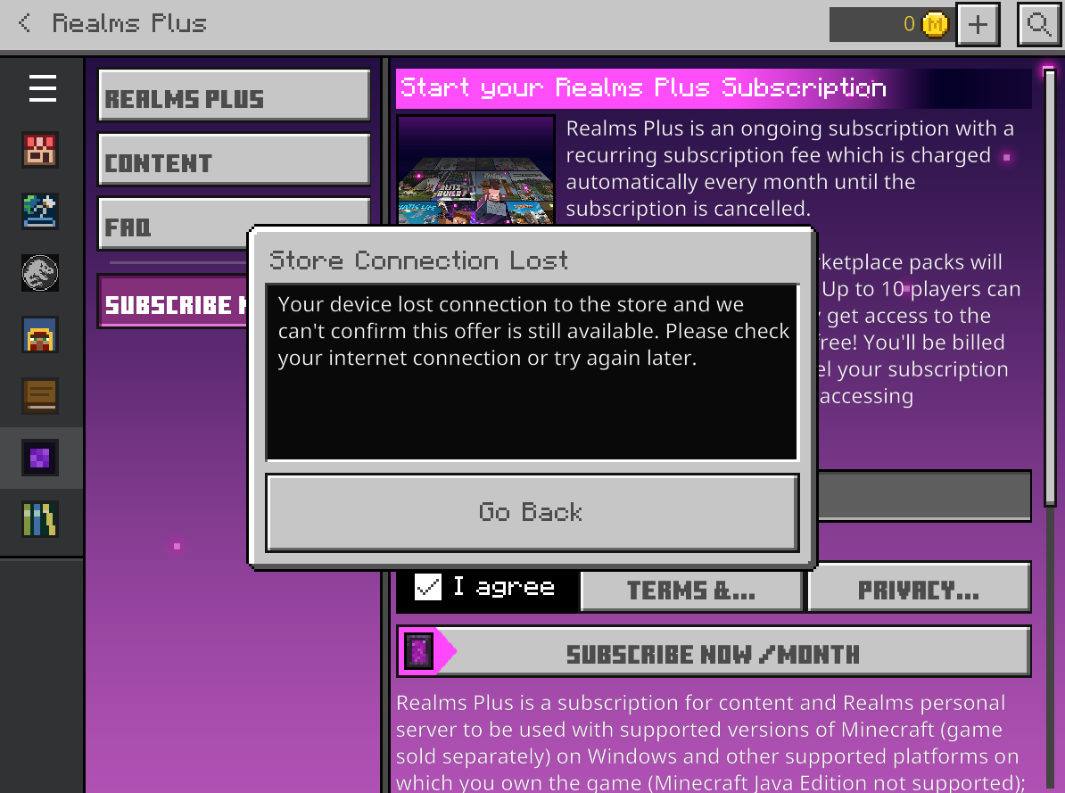 The market description does not show a price. When attempting to purchase, it says "Store Connection Lost".