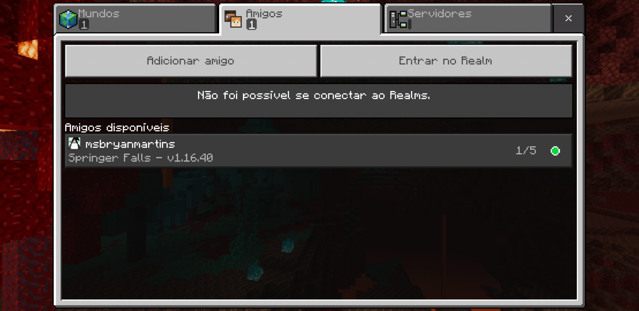 The screenshot is on attachments on Brazilian Portuguese language ("Não foi possível conectar ao Realms" = "We could not connect to Realms")