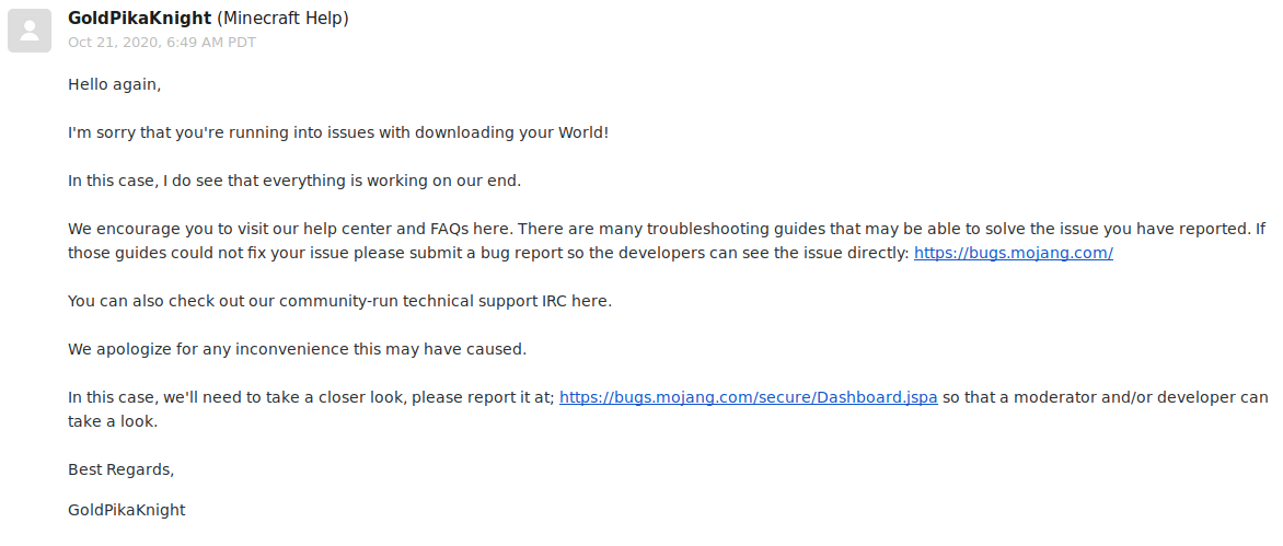 📓 Bug Tracker Guidelines – 💬 Community Support – 📧 Mojang Support