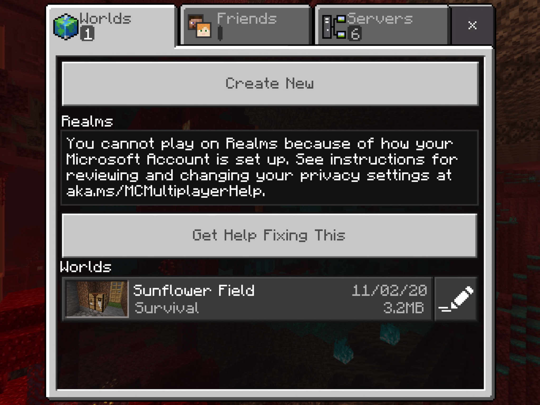 I am having an issue where I see the following message "You cannot play on Realms because of how your Microsoft account is set up".