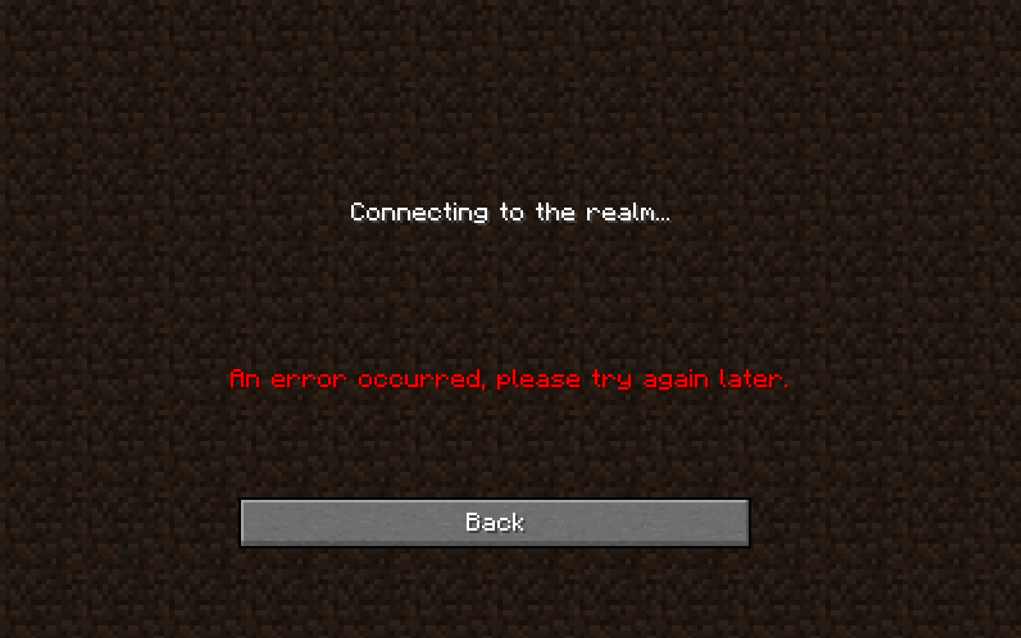 Everyone on the realm has tried to connect and we all get the same issue, it takes a long time to load and then shows the message "An error occurred try again later." We've been trying all day and still no change.