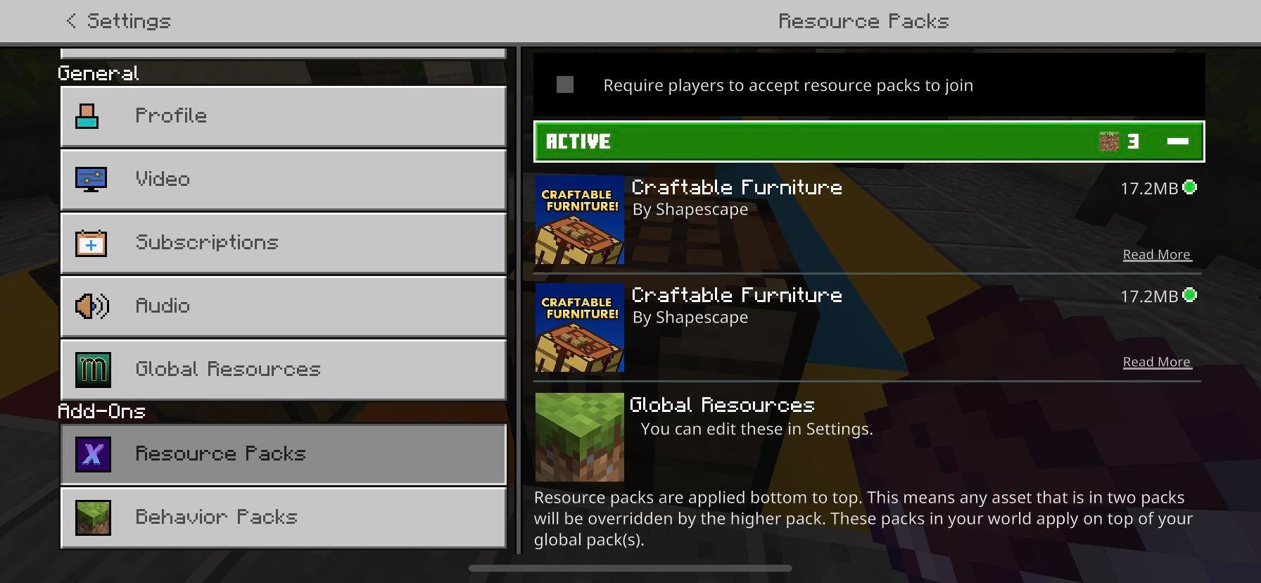 Is this normal that this would happen with certain add-ons not working in realms? It's creating the world and it will show the furniture that was added by the creator to the map. However, it's not showing in my inventory or allowing me to craft anything.