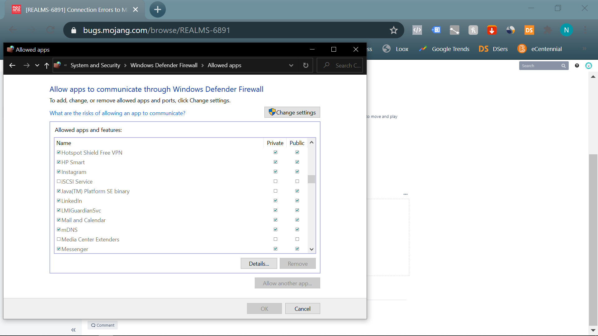 I am unable to connect to my Minecraft realm on my home network. This is what I've observed: