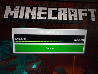 After the Initializing Download prompt, download starts with the title saying Downloading World.
