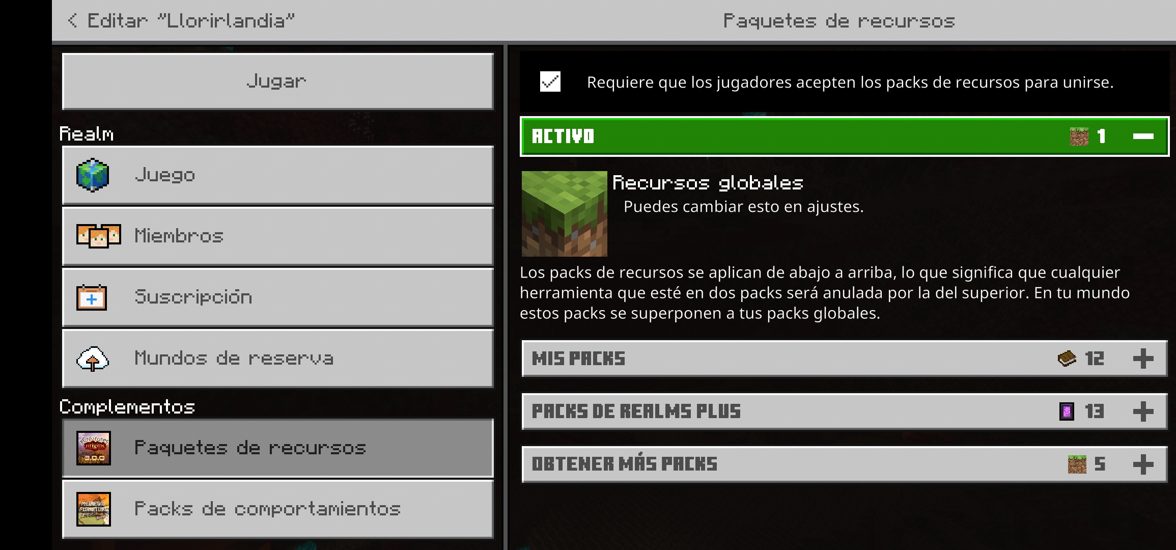 When I want to add or remove any behavior or texture pack in my realm, the behaviors and resources do not appear. And in the case I add an addon or a resource pack the others that are in the realm dissapear.