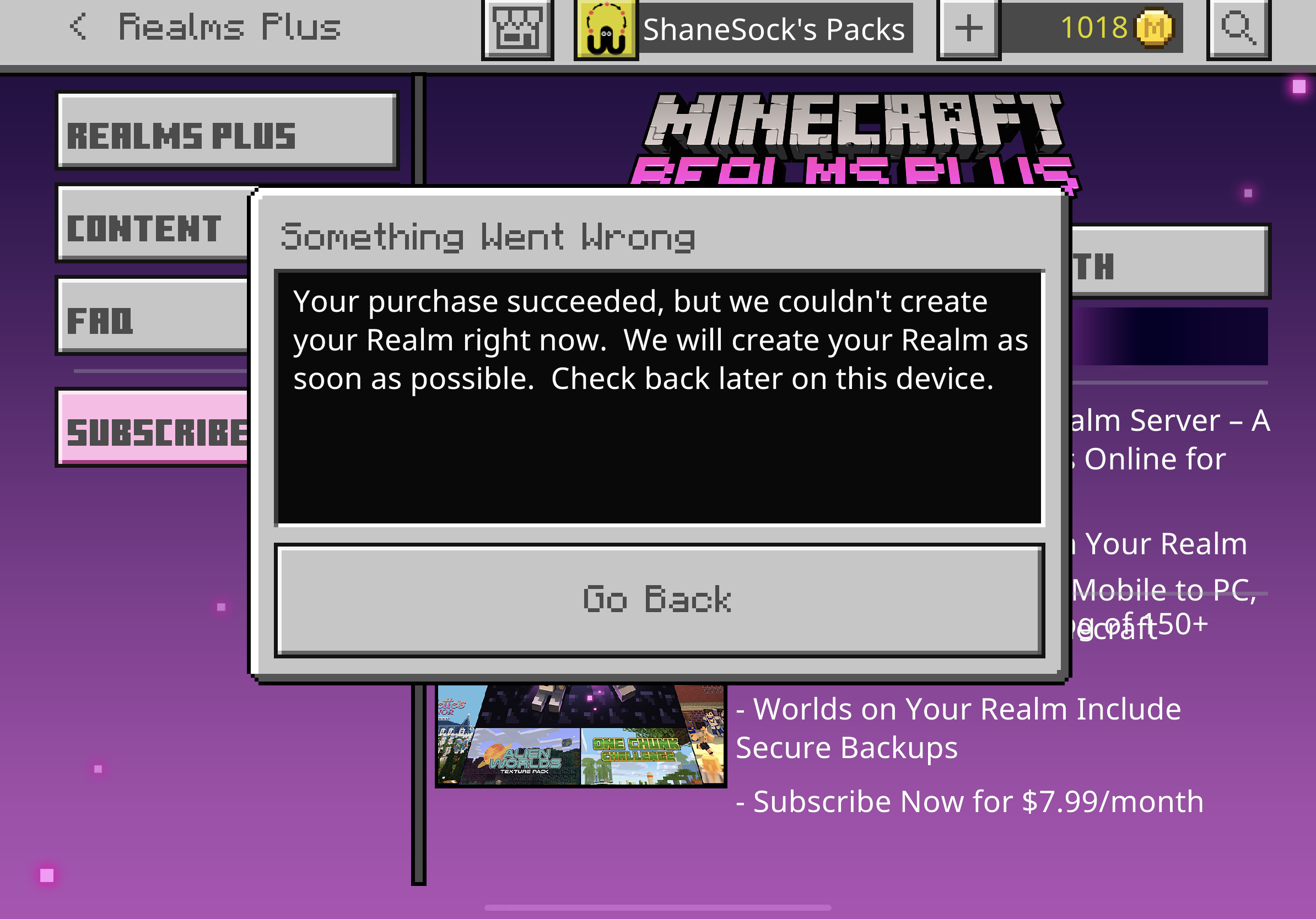 If you are still unable to access a paid service such as a realm or purchased content, please contact Mojang Support.