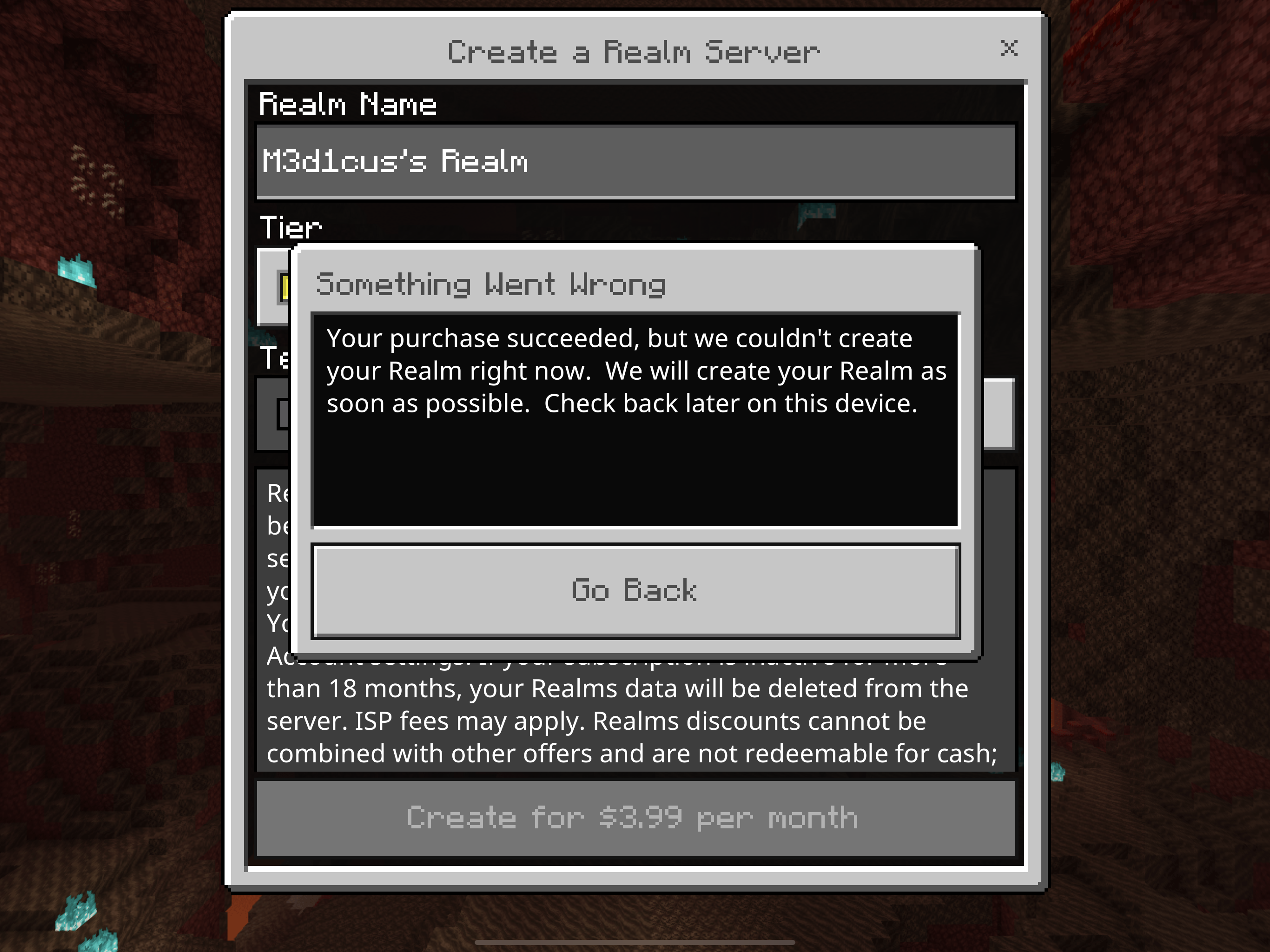 Hey there I've been trying to get a realm going for my family and I to play on for quite some time. I had this issue last time and so I just cancelled my subscription, lost my 3.99$ and just let things be. At this time my kids would like to try realms again and it seems I cannot get a world toon on my realms. Any help would be appreciated. Currently my iOS subscription Β for the realm is active. Ty.Β