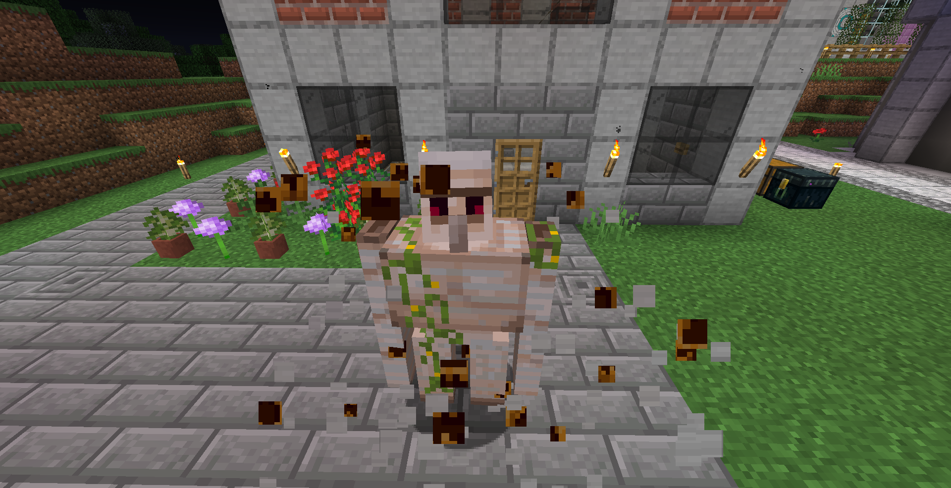 Iron golems are supposed to spawn in water, as they do in iron farm designs which work in single-player worlds. However, they don't spawn naturally in water on Realms at the moment. They also can't be built in water, regardless of the block underneath. Building an iron golem anywhere else near the water works fine, as does removing the water and then building the iron golem. This bug breaks most iron farms and is inconvenient for resource generation.