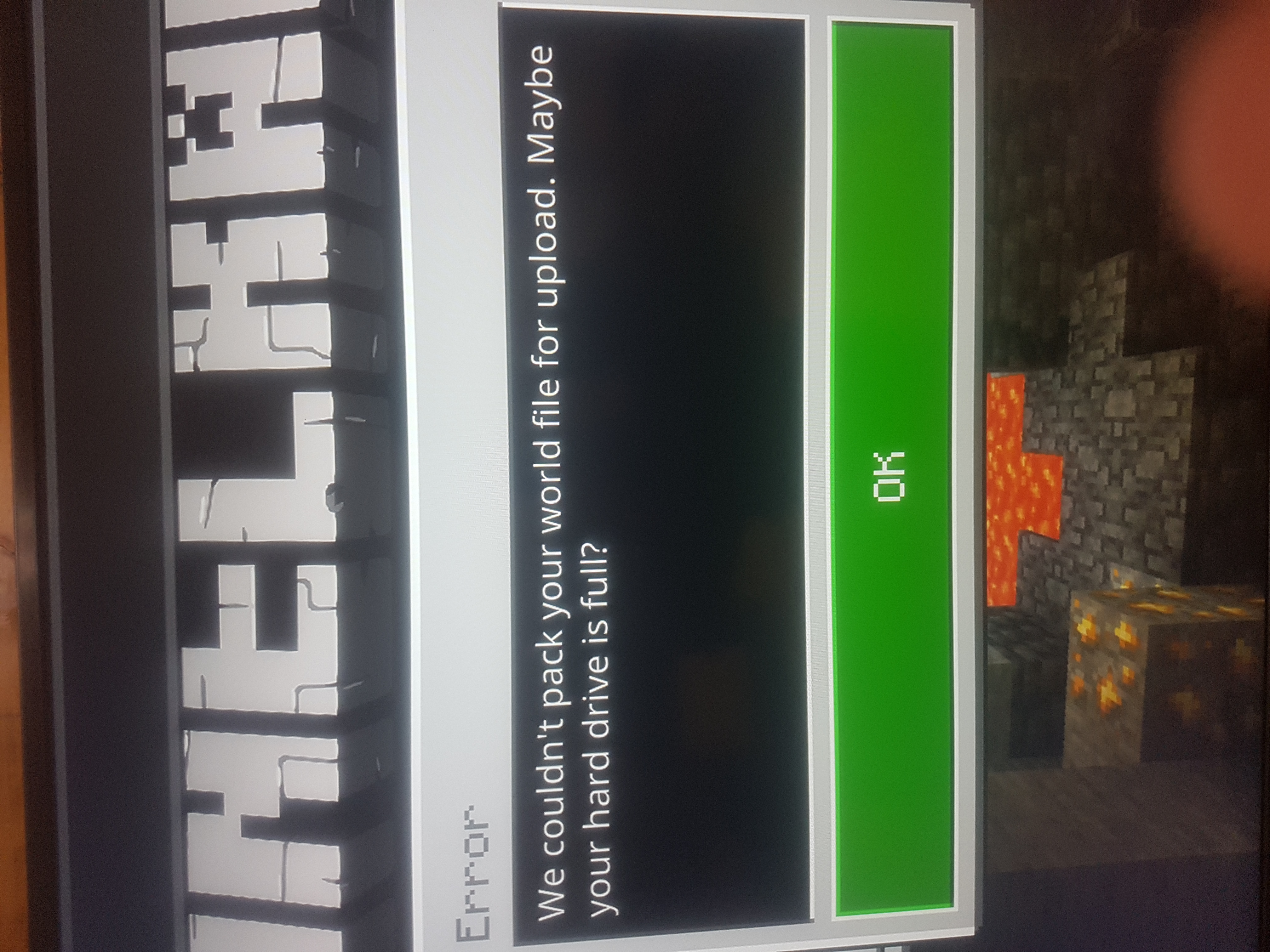 I have spent several days setting up a world for me and my friends to play on, I've already used my realm quite a bit, but when replacing/uploading the world it says 'Error, We couldn't pack your world file for upload. Maybe your hard drive is full?' I deleted many worlds and screenshots but it still doesn't work. I play on Nintendo switch. Please help Mojang, I've noticed many others have this problem so please help.
