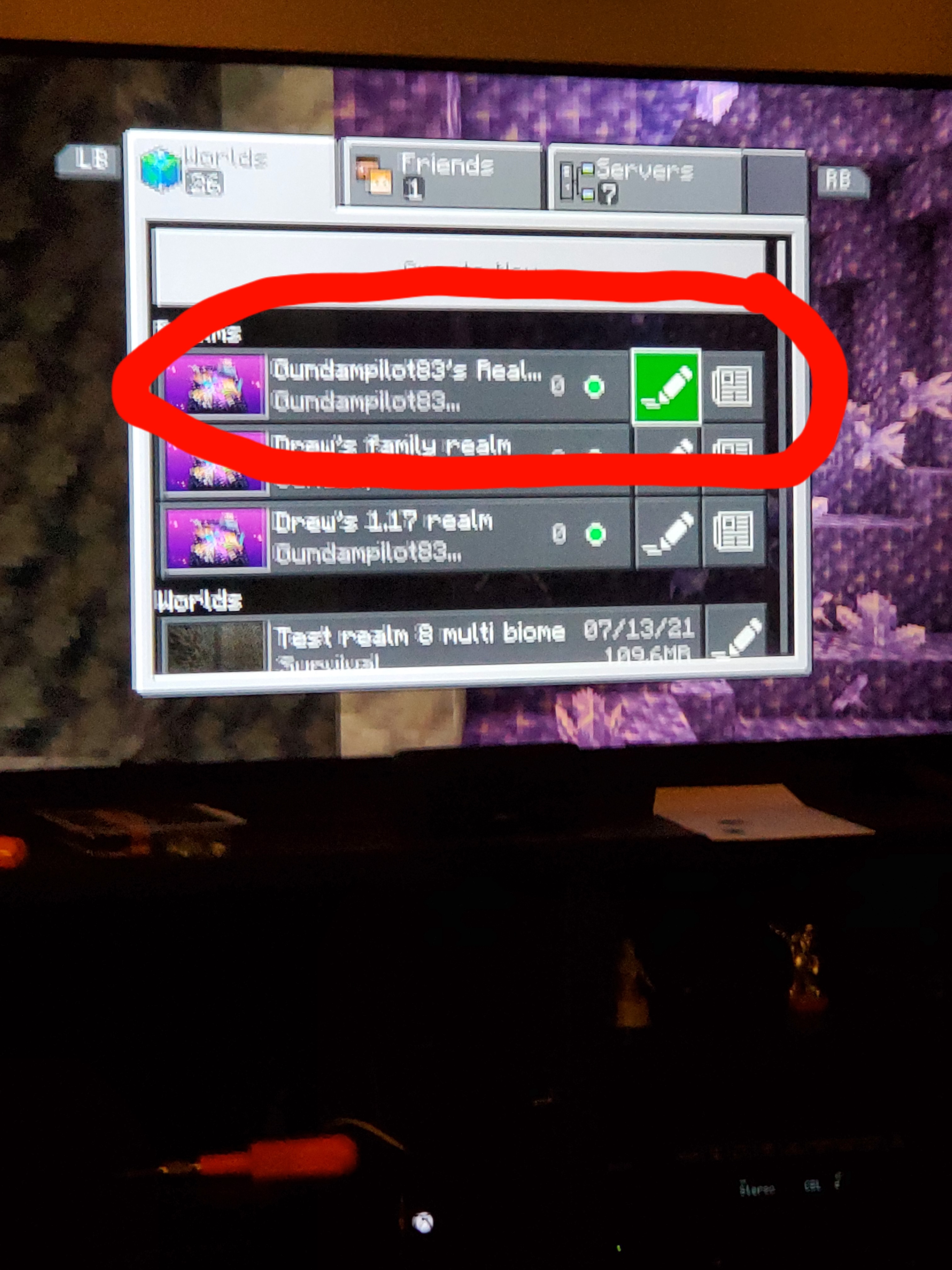 Ok, so the world my friends and I have been playing on is NOT on the list of 3 worlds... when I go to the edit realm screen. If I just go directly to play on it, without clicking the pencil icon to edit settings, I go straight into the realm we've been playing on. BUT if I go to the edit screen it prompts me to "activate" a world to use as the realm world, either my oldest single player world, a new blank one, or the celebration world. None seem to give me the option to "activate" the world that already exists as far as I can tell