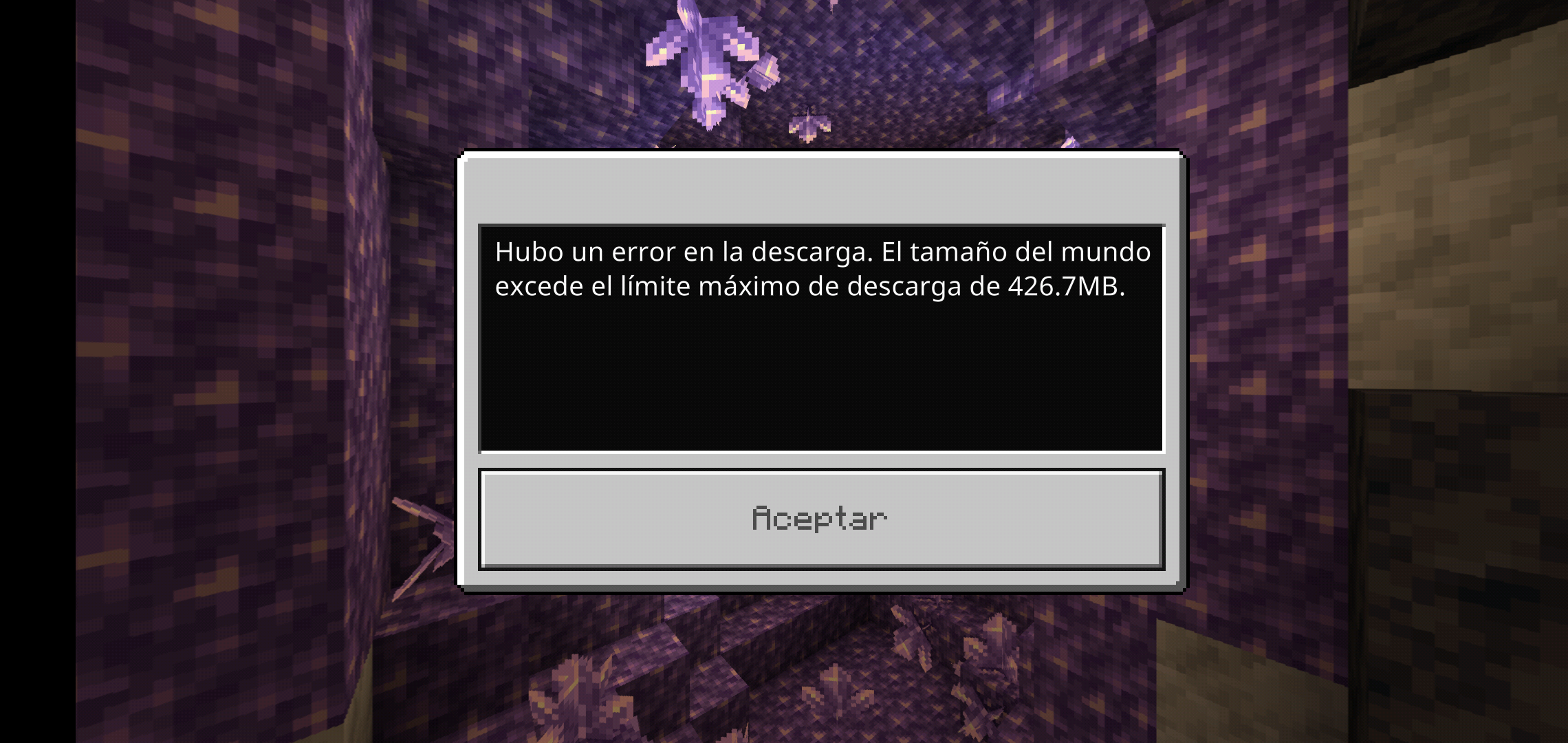 world size exceeds maximum download limit of 426.7MB
