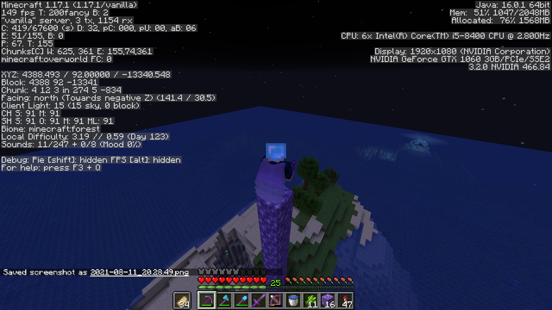 This report was declined because I used a mod (Optifine). Now I have switched to vanilla as you can see in the screenshot.