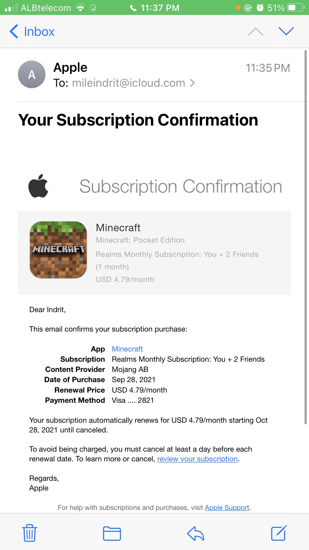 If you are still not able to access your purchased realm please contact the Minecraft Help Center.