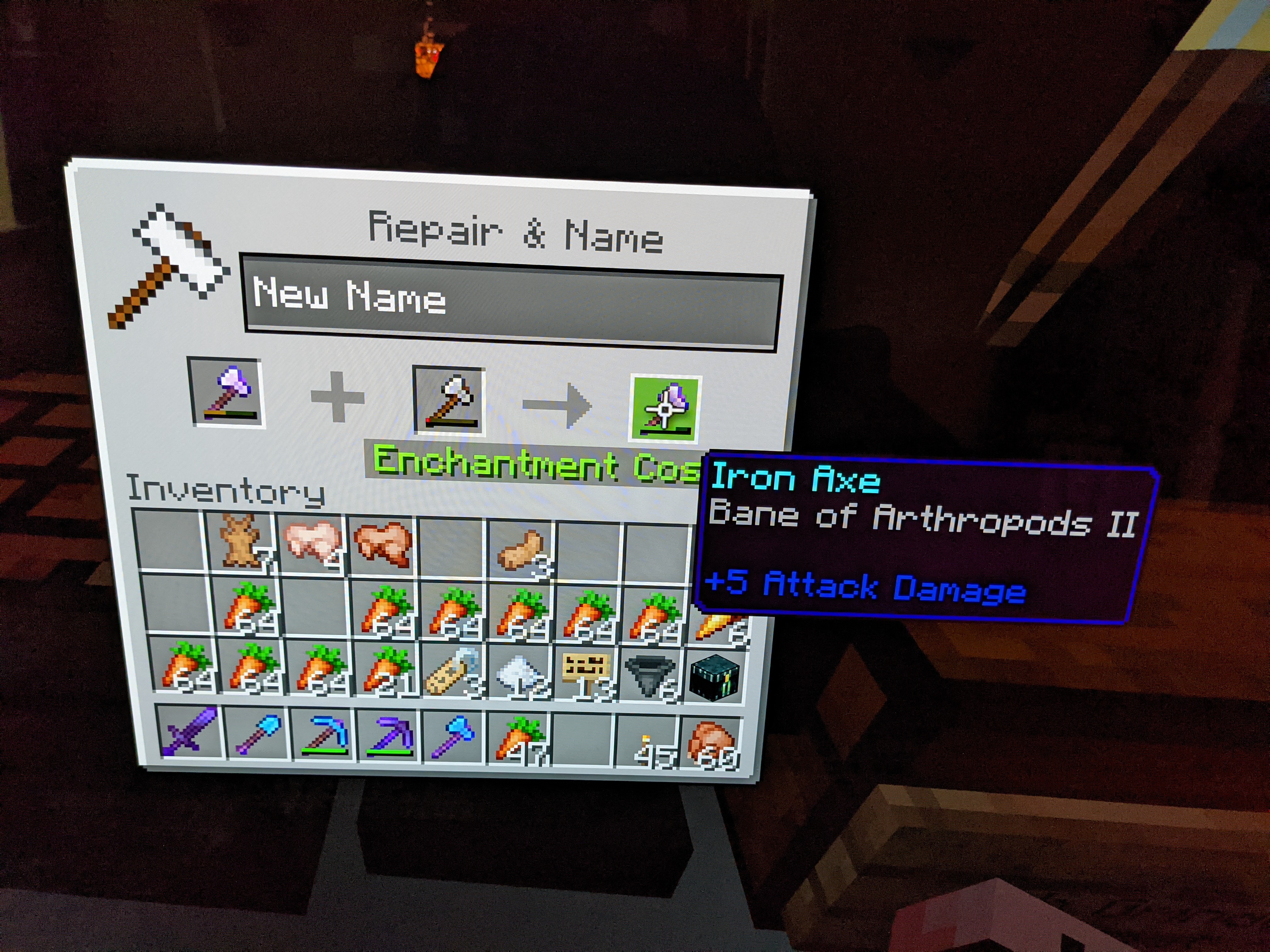 4. The named item appears as a default name. Take out the item from the third slot when it displays "Enchantment Cost: X."