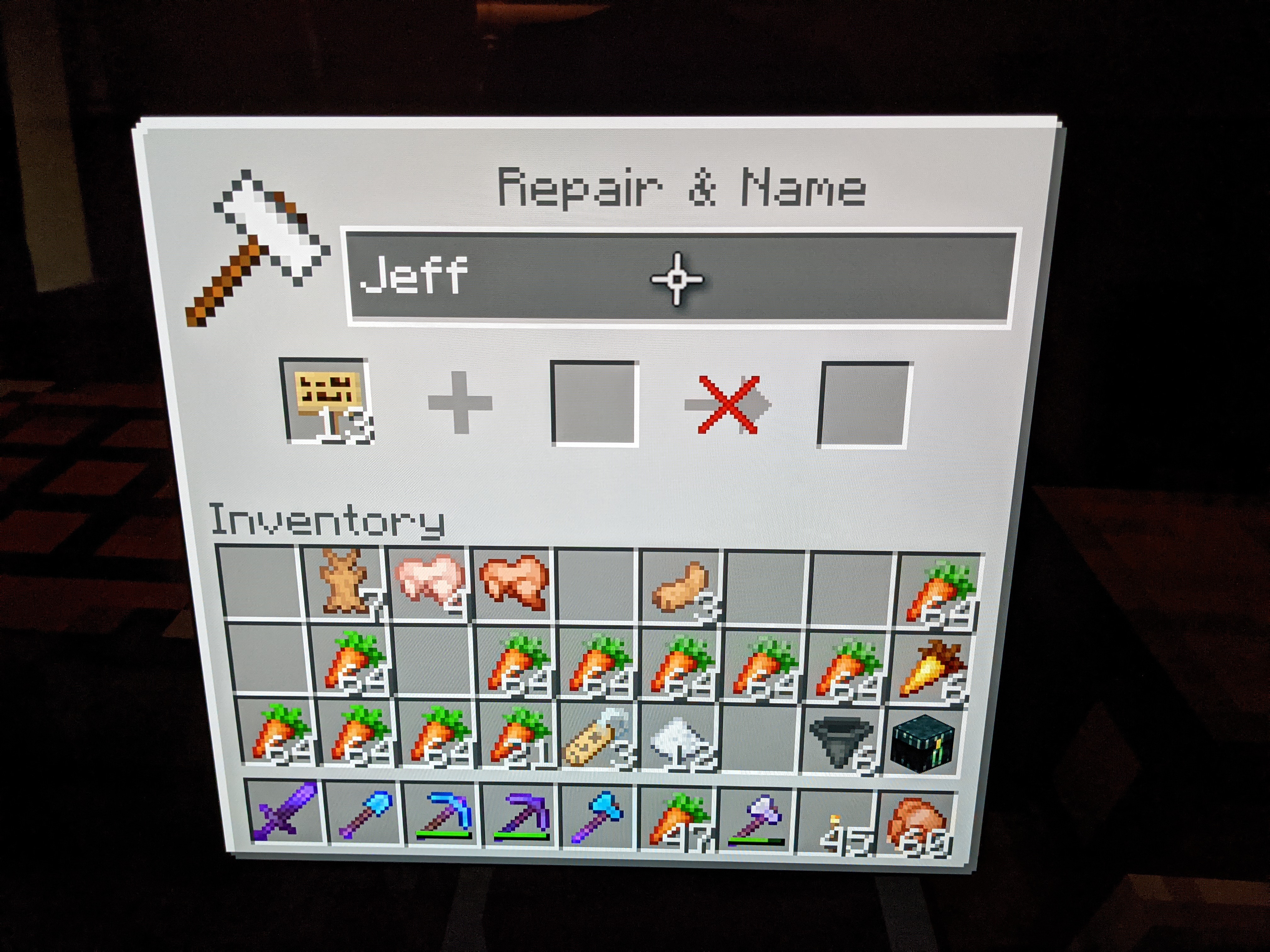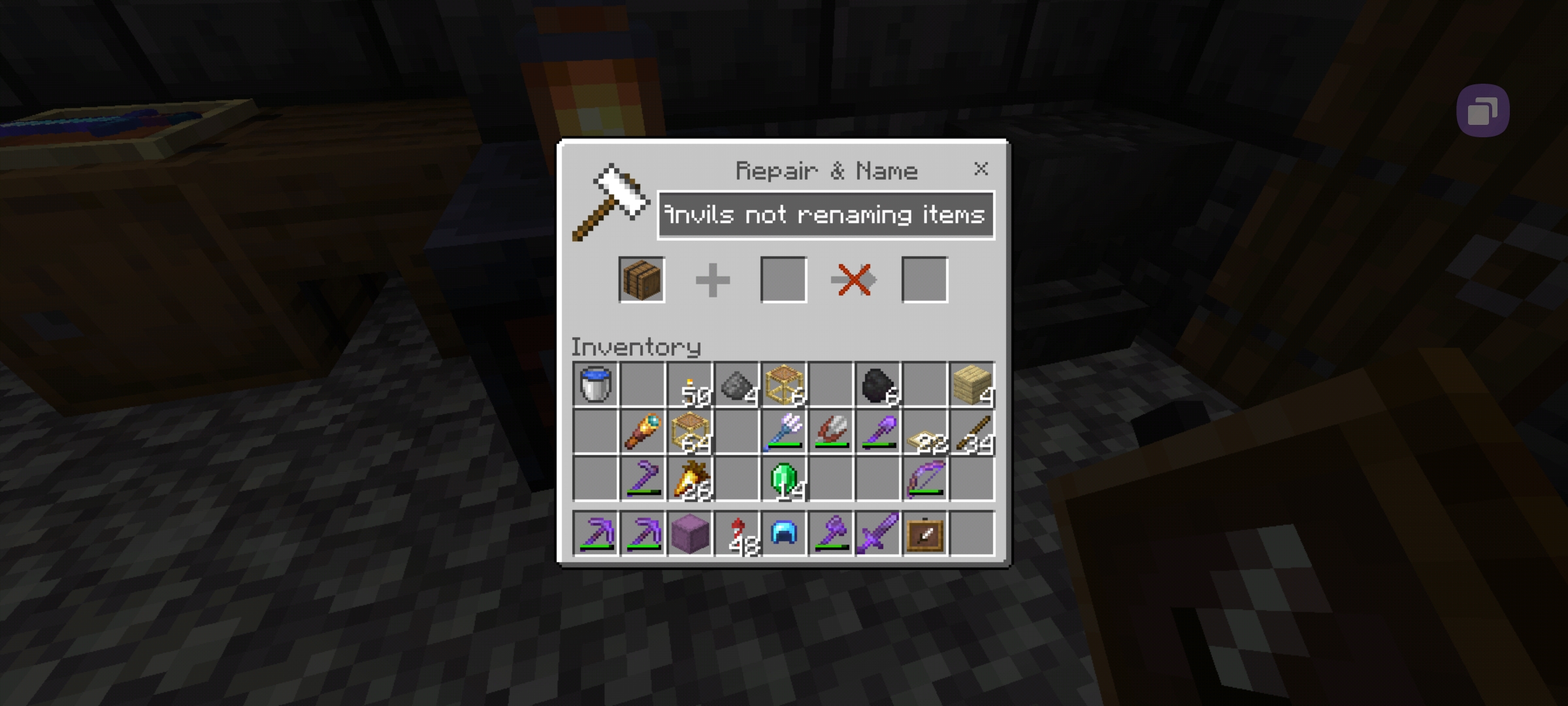In addition, all of us are having issues with text on signs. We have found that if the text sticks, then anvils will work for renaming. However, when it comes to my friend on XBOX, even when the renaming succeeds, when he relogs the item will apparently lose the new name.
