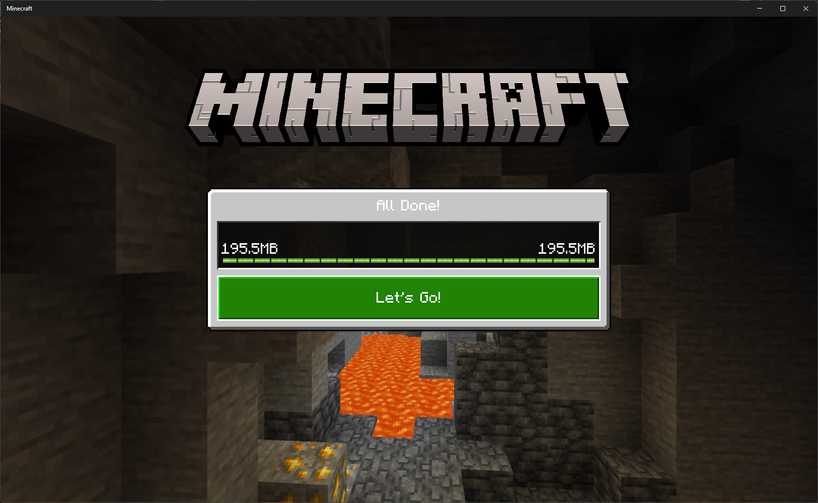 Noting the "file" size is differs between the "Choose Realm" (196.7MB) page and the "All done" (195.5MB) page. Clicking the "Let's Go" button in this case connects me to the same "new" world created in step II.