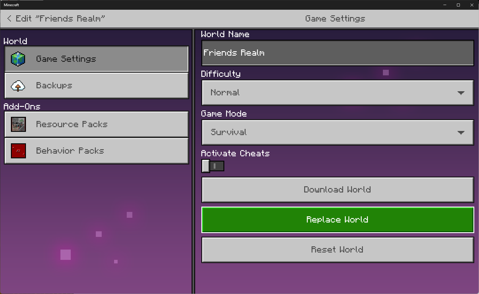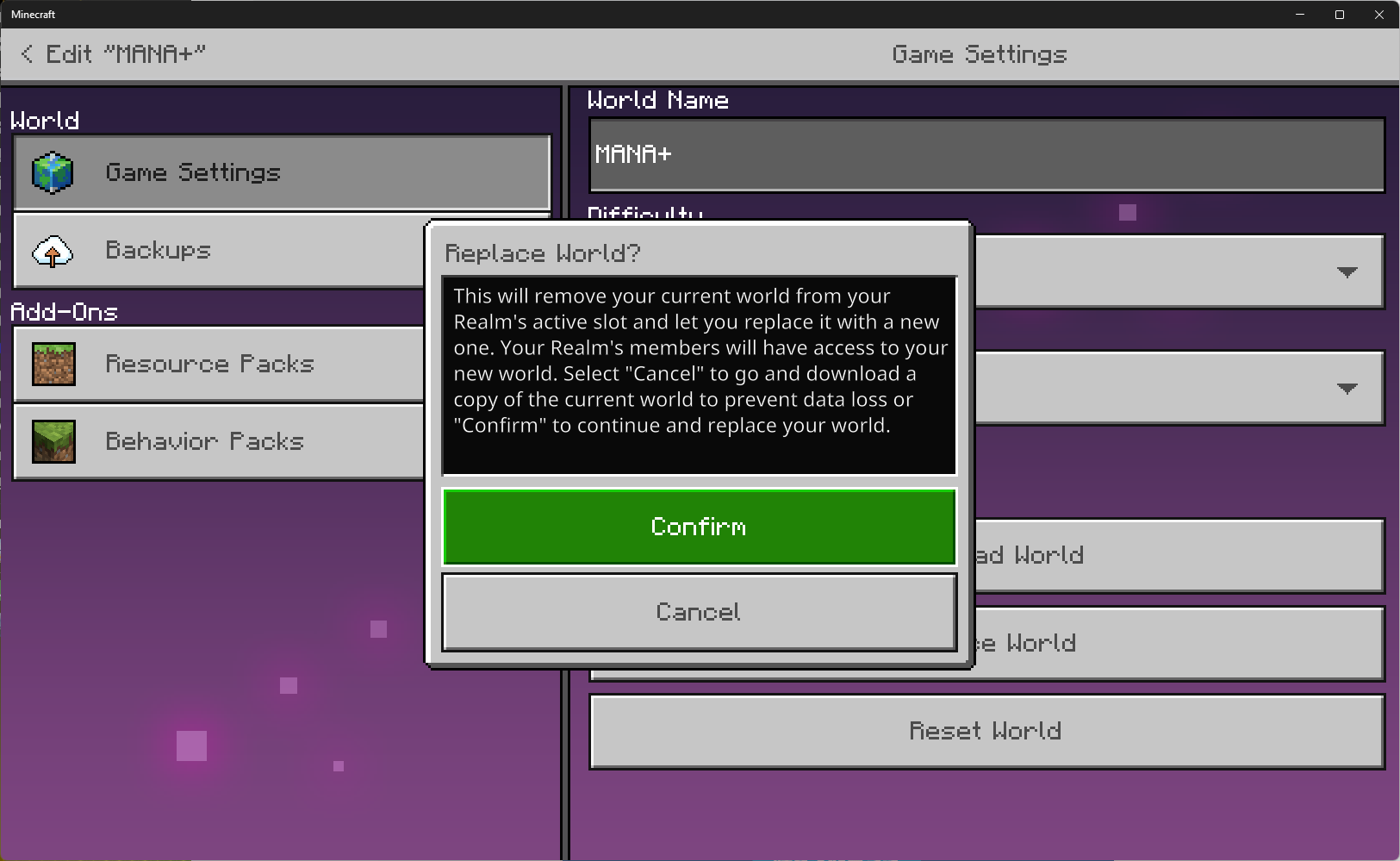 IV. Have attempted the "Replace World" method several times to the same result. Decided to bite the bullet for science and attempted to "Play on Realm" again, subscribing to another realm. Again this just leads to another new seeded world. All these new worlds aren't even a reset version of the world I'm trying to upload. Just straight out a different fresh new world.