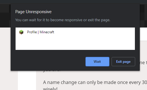 Trying to change your username results in the webpage freezing and becoming unresponsive according to chrome, I've waited 30 min and nothing has changed. When going into an incognito window I get an error message saying "error changing usernames, are you sure you entered the right password" and of course I entered the right password and made sure the username wasn't taken.