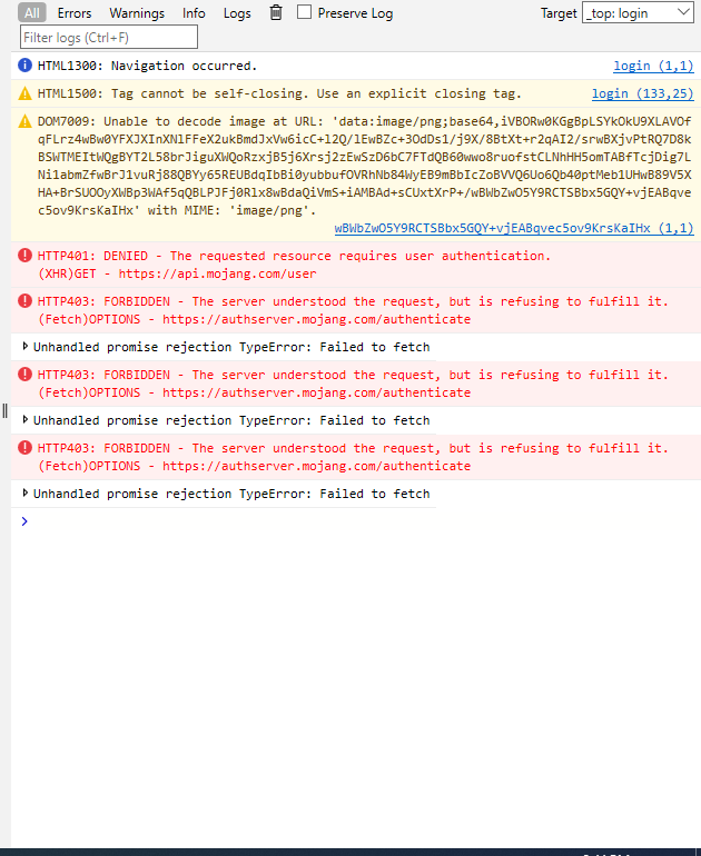 everytime i try to login... it does nothing. no error. no warning, just nothing, when i opened inspect this is what i get in both Chrome and Microsoft Edge